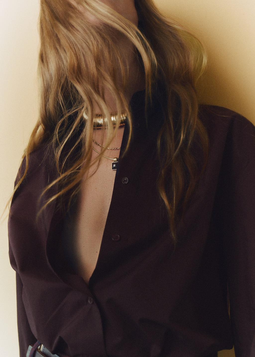 Confeccionada en tejido popelín de algodón, esta prenda presenta un diseño oversize con cuello camisero. La manga larga incluye puños abotonados y el cierre delantero se realiza mediante botones