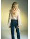 Confeccionada en tejido con textura, esta prenda presenta un diseño recto que se complementa con un cuello alto adornado con lazo y manga larga acampanada