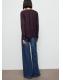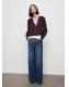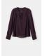 Confeccionada en tejido de gasa, esta prenda presenta un diseño recto con un cuello escotado. El escote se adorna con un cierre de lazo, mientras que las mangas largas terminan en puños abotonados