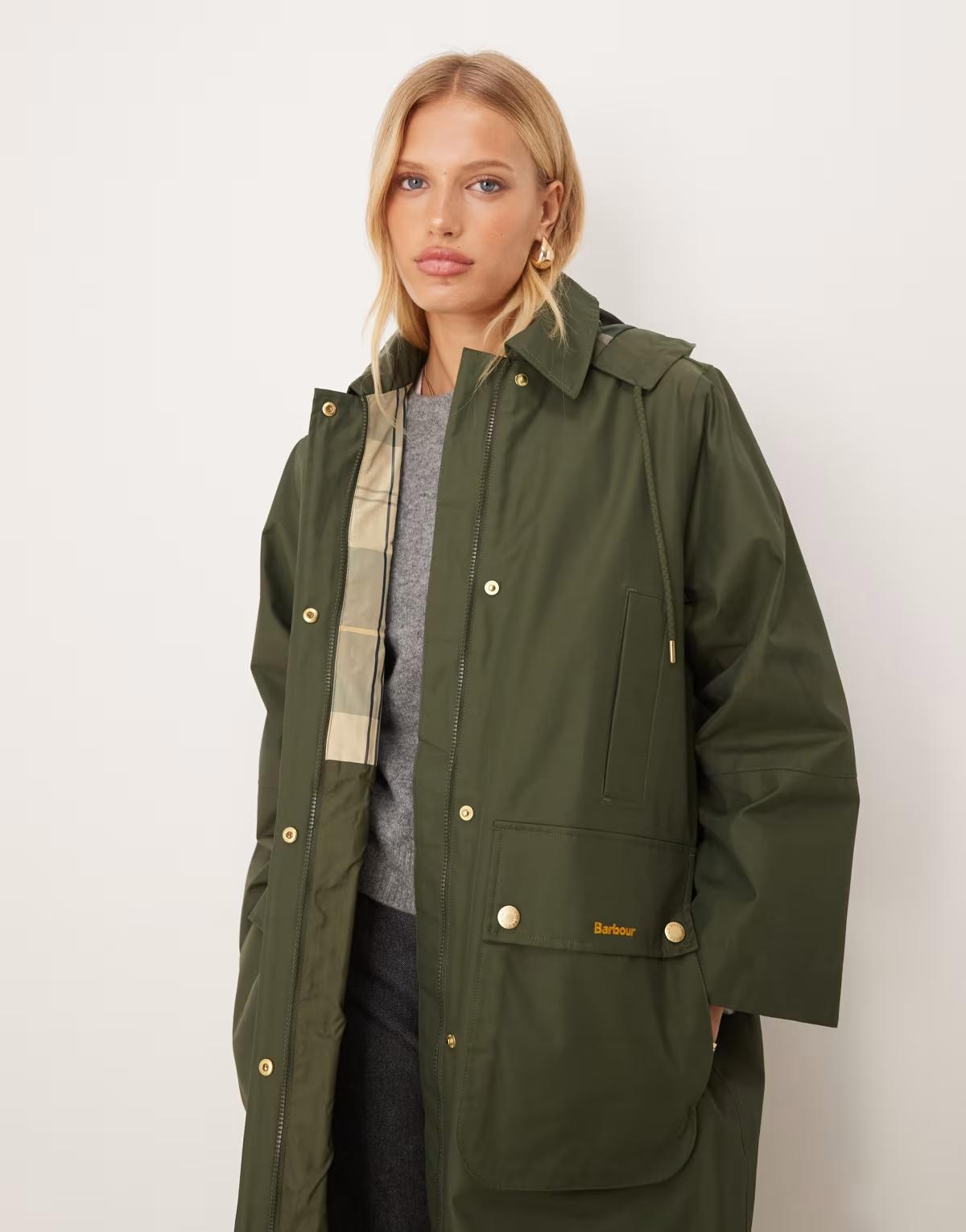 Main: 61% Cotton, 39% Polyamide, Lining: 100% Polyester.With a rich heritage dating back to 1894, quintessentially British brand, Barbour have garnered a reputation for quality and durability, across their collection of high performance outerwear. Fusing fashion with functionality, their International range offers a feminine take on the biker jacket, reworking the silhouette with a contemporary nylon and leather finishes in a bold colour palette. Meanwhile the Heritage line champions the brand's signature style with classic quilted jackets sitting alongside the waxed cotton Beadnell.Size & FitModel's height: 175cm / 5' 9''