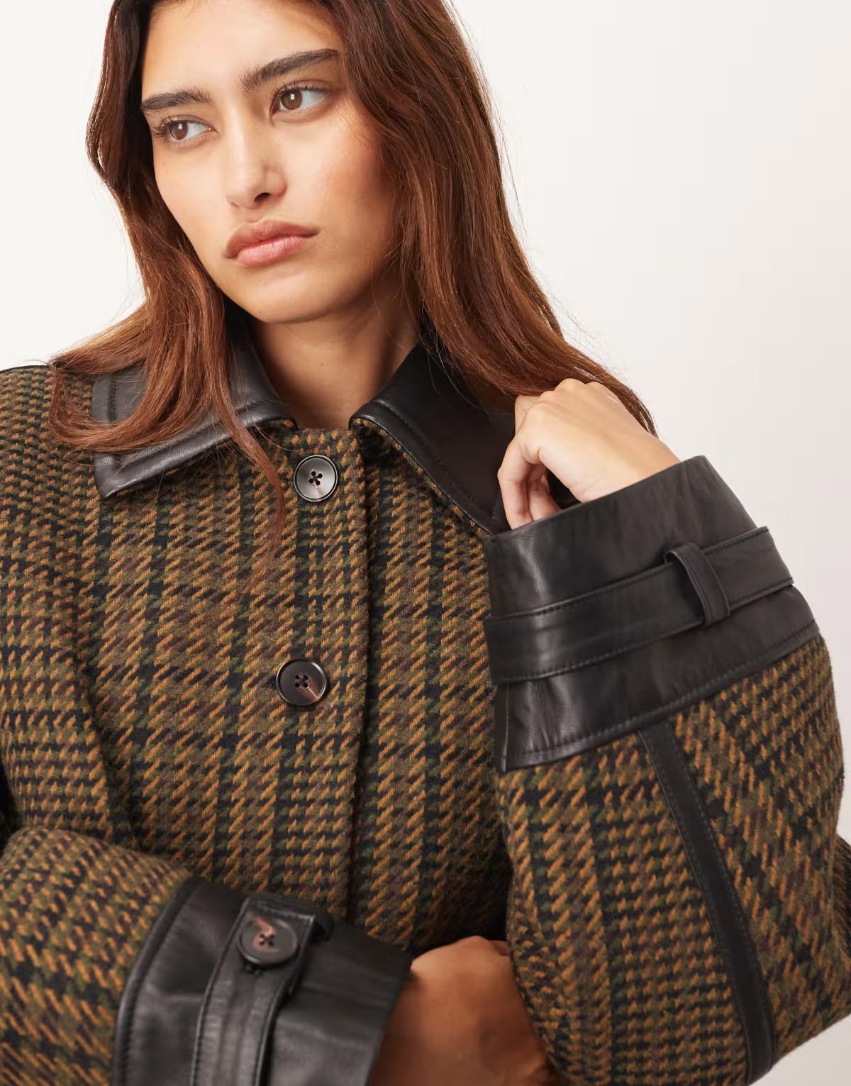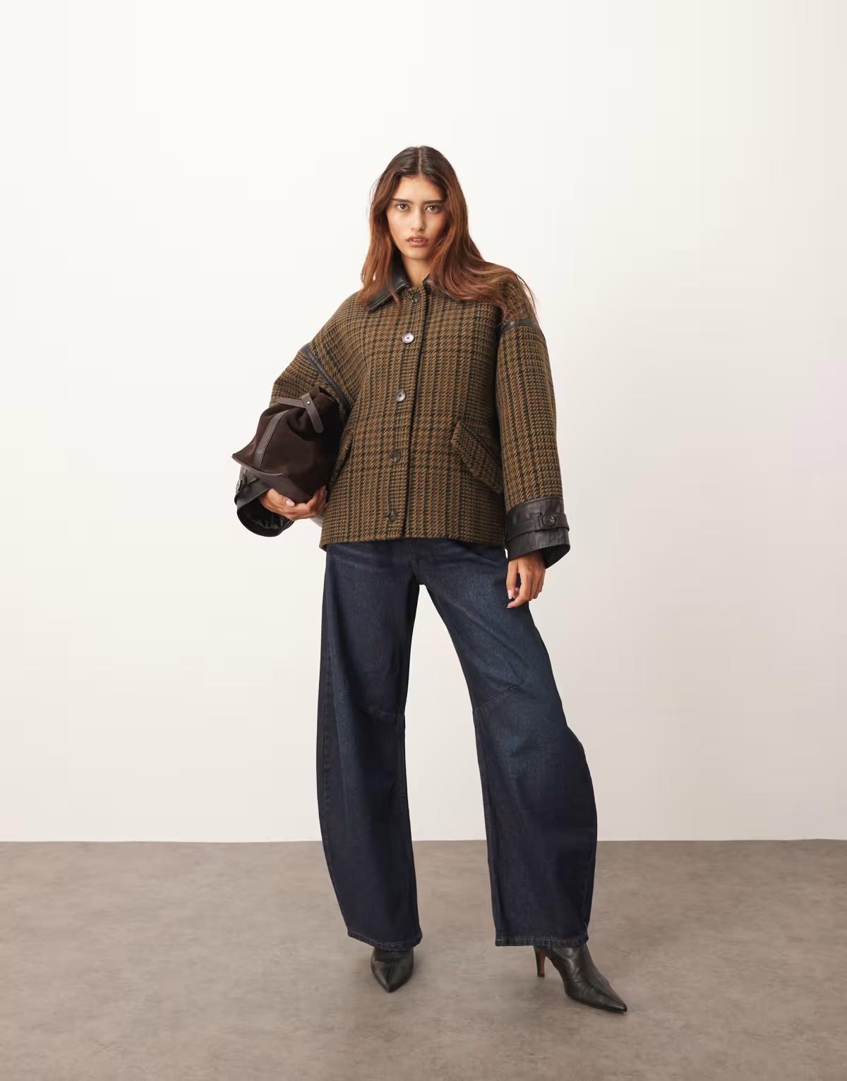 Back: 100% Polyester, Contrast: 100% Leather, Face: 57% Polyester, 15% Acrylic, 15% Wool, 13% Nylon.Luxe embellishments, modern silhouettes, premium fabrics and hand-painted prints are just some of the impressive design signatures of ARRANGE's capsule collections. The London-born and women-led brand is dedicated to directional pieces with a feminine edge, offering up a regular capsule of occasionwear and elevated essentials in sizes 4-30. With jeans, co-ords, separates and dresses (with pockets) in the mix, ARRANGE promises to make day-to-night dressing a breeze.Size & FitModel's height: 173.5cm / 5' 8½''
