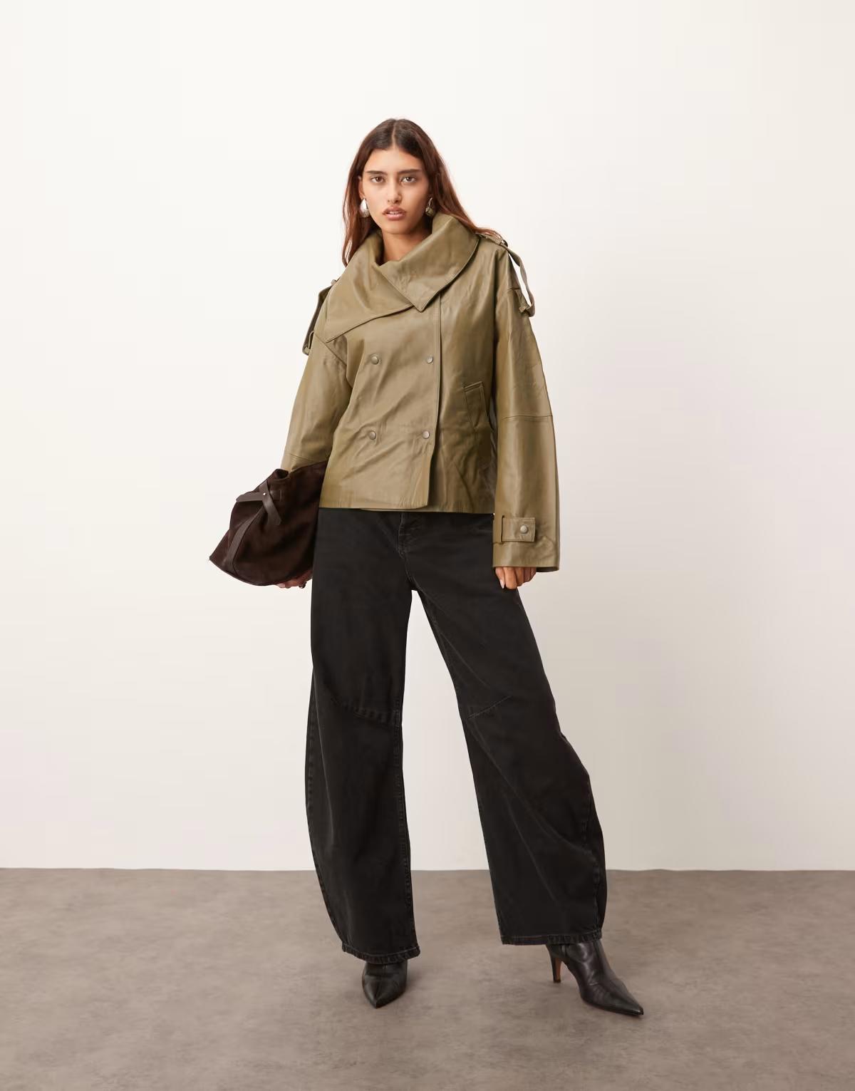 Lining: 81% Polyester, 19% Cotton, Shell: 100% Leather.Luxe embellishments, modern silhouettes, premium fabrics and hand-painted prints are just some of the impressive design signatures of ARRANGE's capsule collections. The London-born and women-led brand is dedicated to directional pieces with a feminine edge, offering up a regular capsule of occasionwear and elevated essentials in sizes 4-30. With jeans, co-ords, separates and dresses (with pockets) in the mix, ARRANGE promises to make day-to-night dressing a breeze.Size & FitModel's height: 173.5cm / 5' 8½''