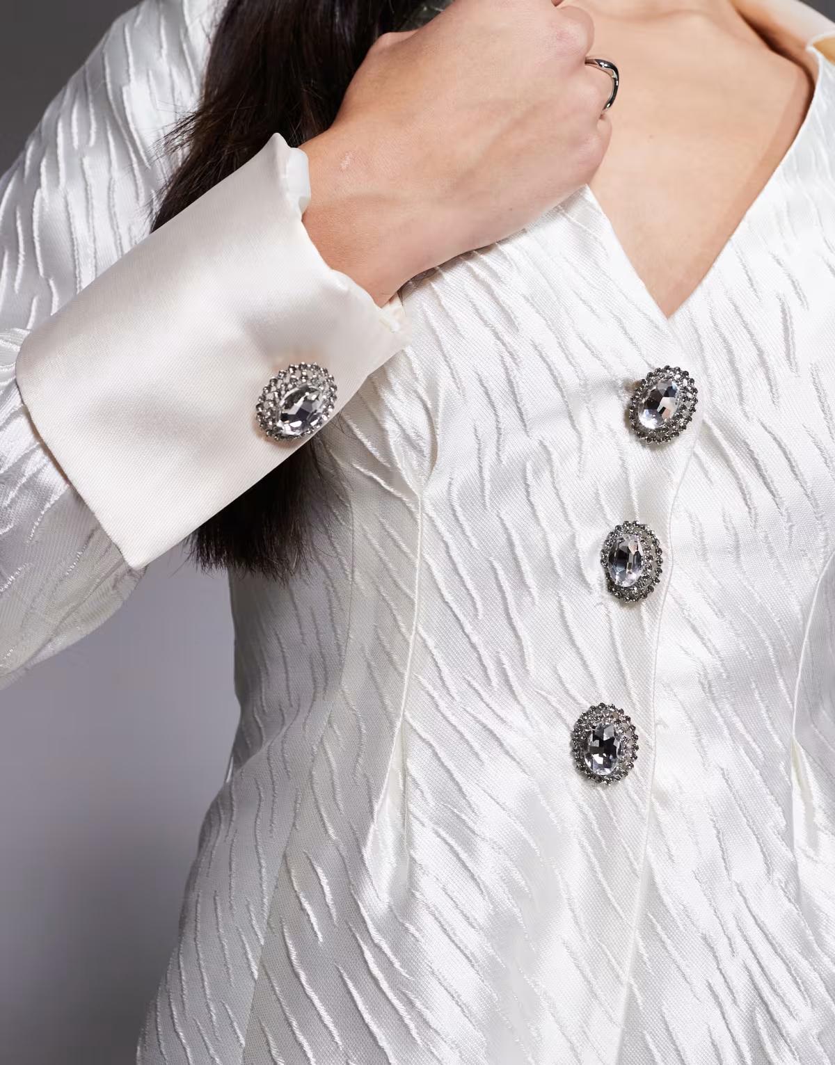 Main: 91% Polyester, 9% Nylon.Get ready to send those ‘What you wearing?’ texts, because ASOS LUXE is serving elevated looks that'll dominate your IG feed and beyond. Make high-key co-ords the first stop on your BNO agenda, or turn up and stand out in ultra-glam dresses and statement outerwear. Brunch-to-bar on the cards? With embellished denim and close-cut tailoring, our ASOS LUXE daywear range is out there doing the most.Size & FitModel's height: 175.5cm / 5' 9''