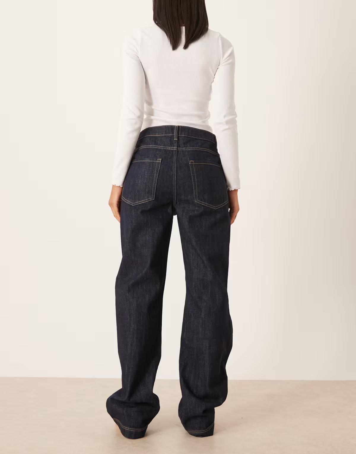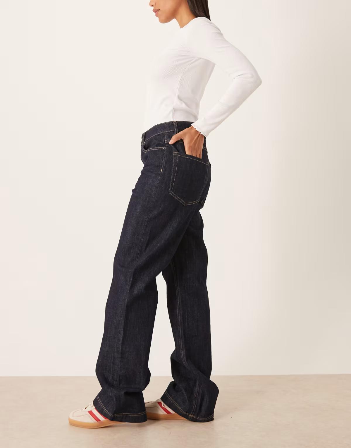 Mango Evan 100% cotton straight jean with contrast stitch in indigo