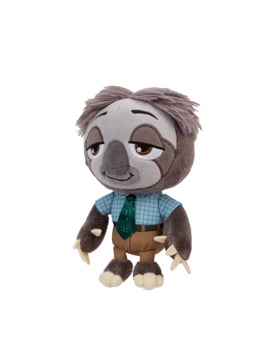Flash, the famously 'speedy' sloth employed at the DMV, is crafted from an ultra-soft material and is dressed in his signature outfit of khakis, a collared shirt, and tie