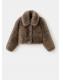 Efecto pelo. Diseño crop. Diseño recto. Cuello camisero. Manga larga. Sin cierre. Forro interior