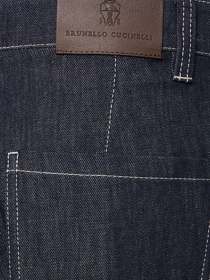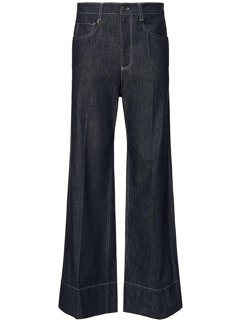 No-fade高腰男友版型牛仔裤 - 蓝色 - 女士 - Brunello Cucinelli - 正面纽扣和隐藏式拉链开合.