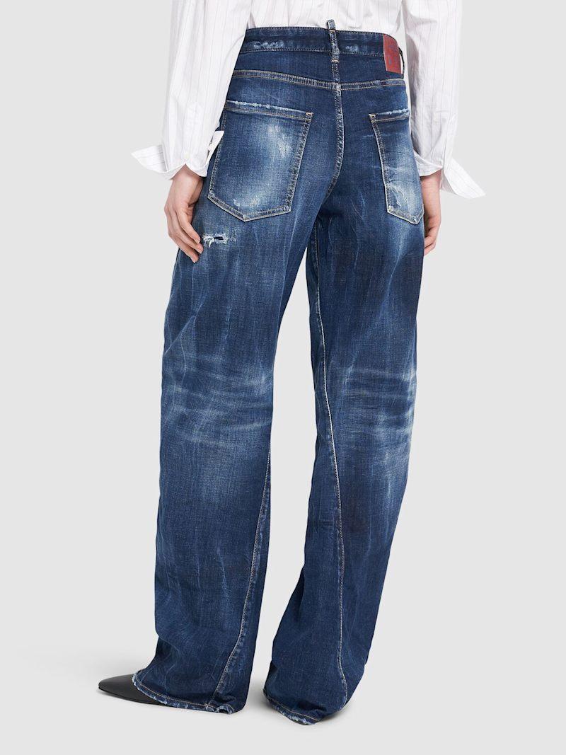D2 Twisted宽松牛仔裤 - 海军蓝 - 女士 - Dsquared2 - 正面纽扣和隐藏式拉链开合.