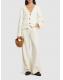 扎染棉&亚麻中腰喇叭腿牛仔裤 - 象牙色 - 女士 - Brunello Cucinelli - 正面纽扣和隐藏式拉链开合.