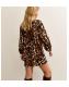 Brown Animal Print Pussybow Mini Dress