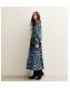 Black Floral Print Long Sleeve Wrap Midi Dress