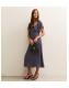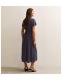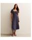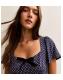 Blue Spot Print Velvet Bow Trim Midi Dress