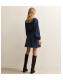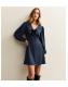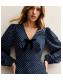 Blue Polka Dot Print Bow Trim Long Sleeve Mini Dress