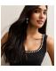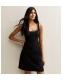 Black Faux Pearl Embellished Scoop Neck Mini Dress