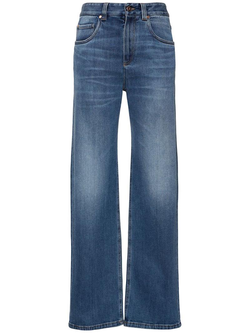 宽松牛仔裤 - 深蓝色 - 女士 - Brunello Cucinelli - 正面纽扣和隐藏式拉链开合.