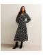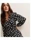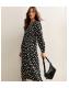 Black Crepe Polka Dot Long Sleeve Wrap Midi Dress