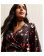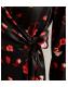 Black Floral Satin Wrap Midi Dress