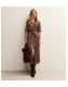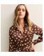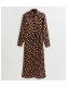 Brown Satin Polka Dot Midi Shirt Dress