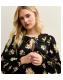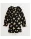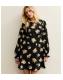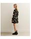 Black Floral Print Collared Keyhole Neck A