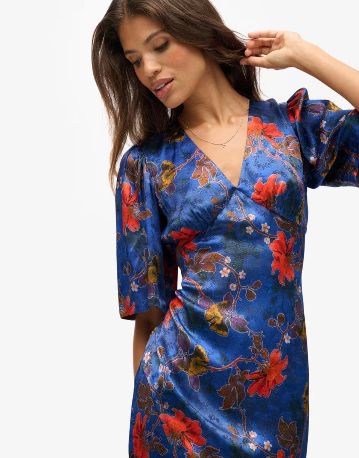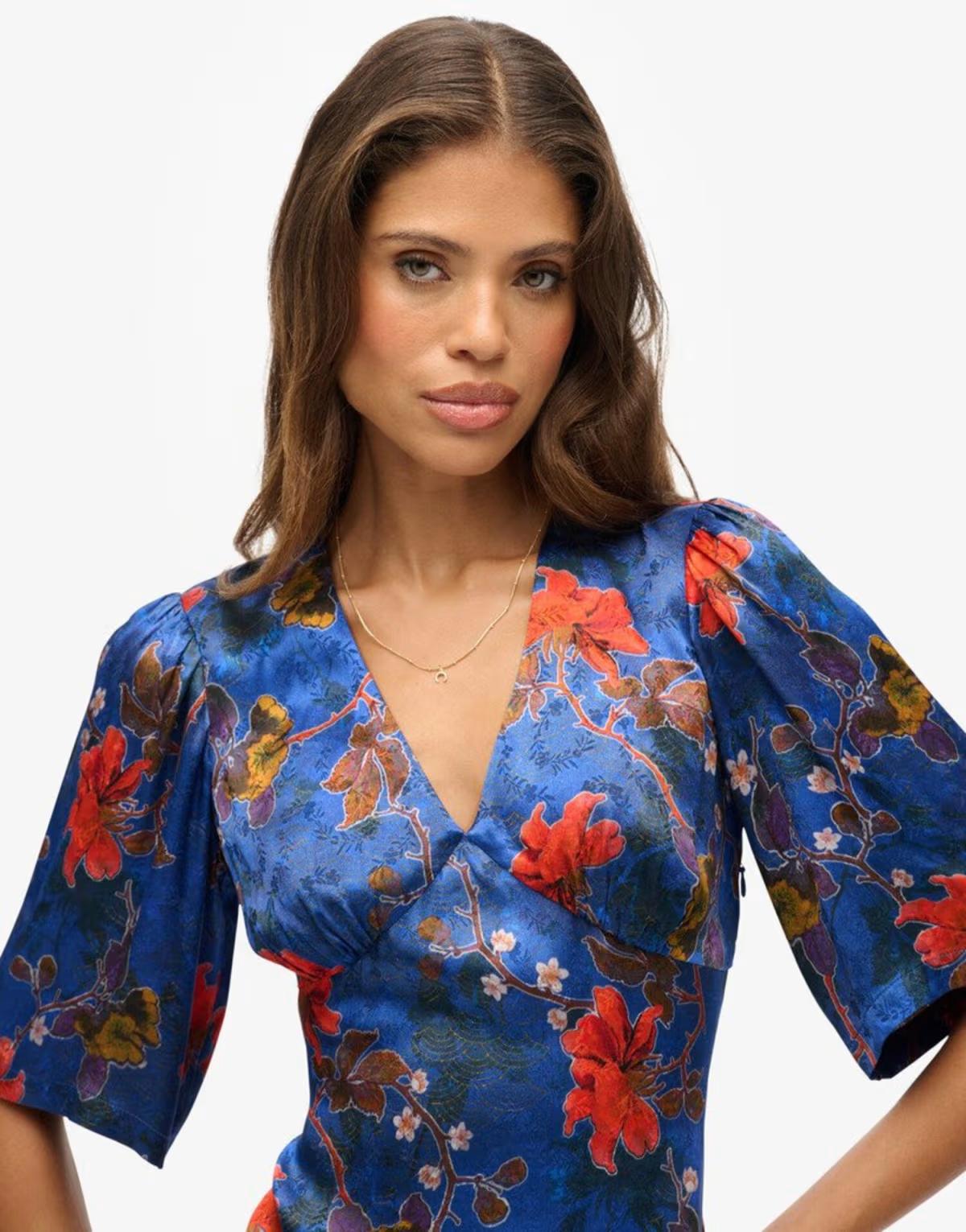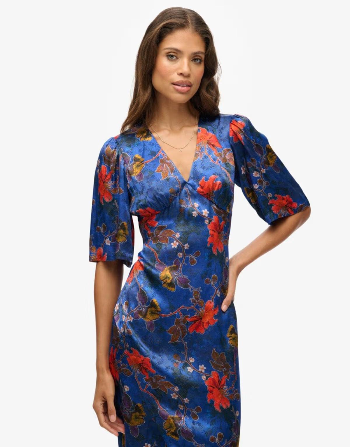 Superdry Short sleeve jacquard midi dress in amaya blossom multi