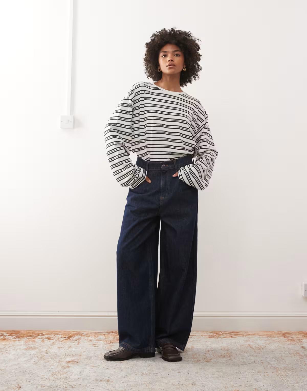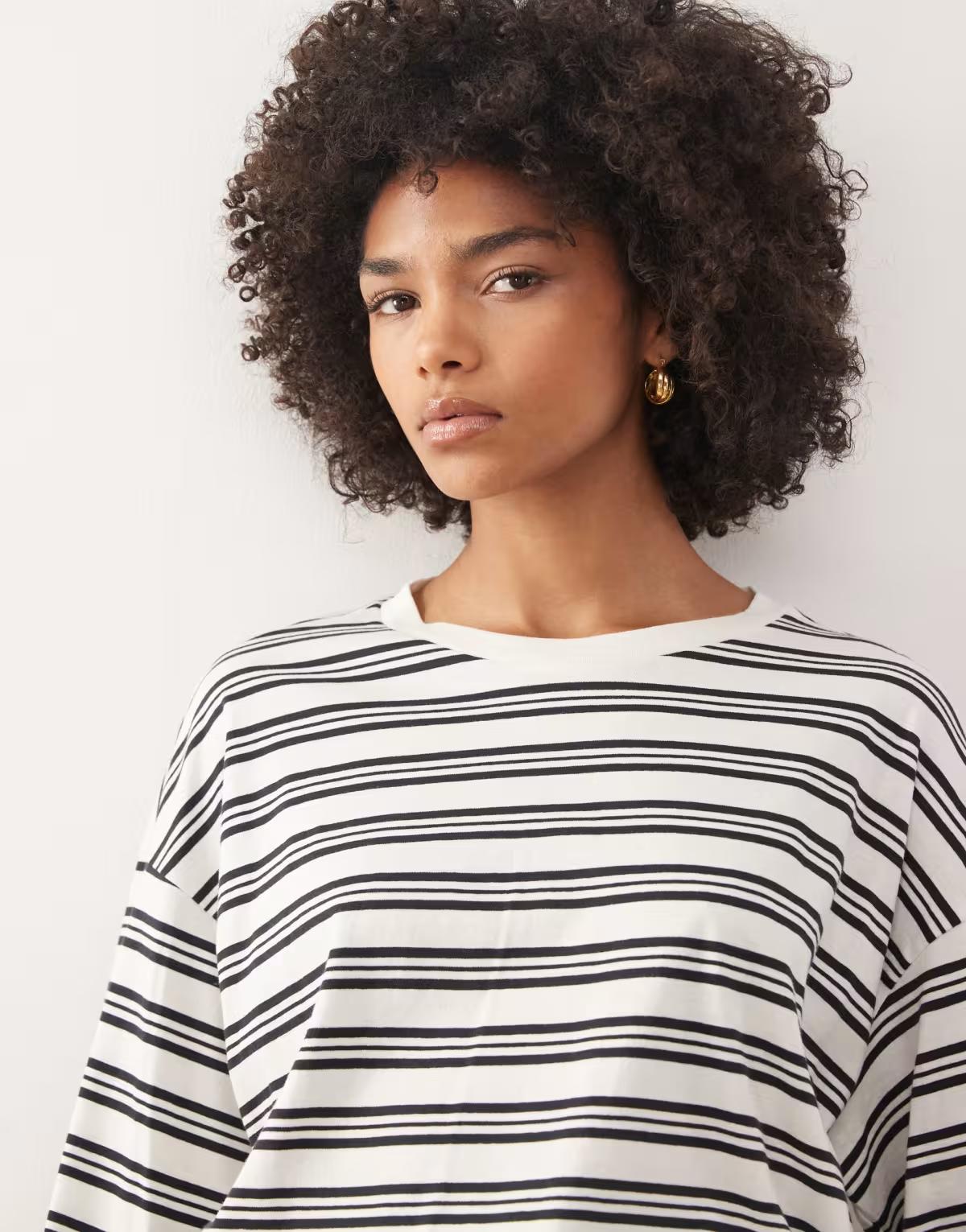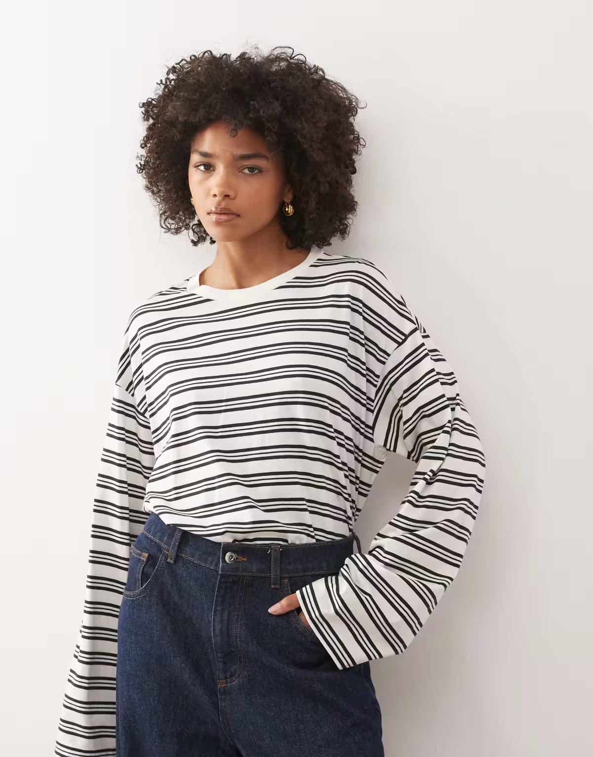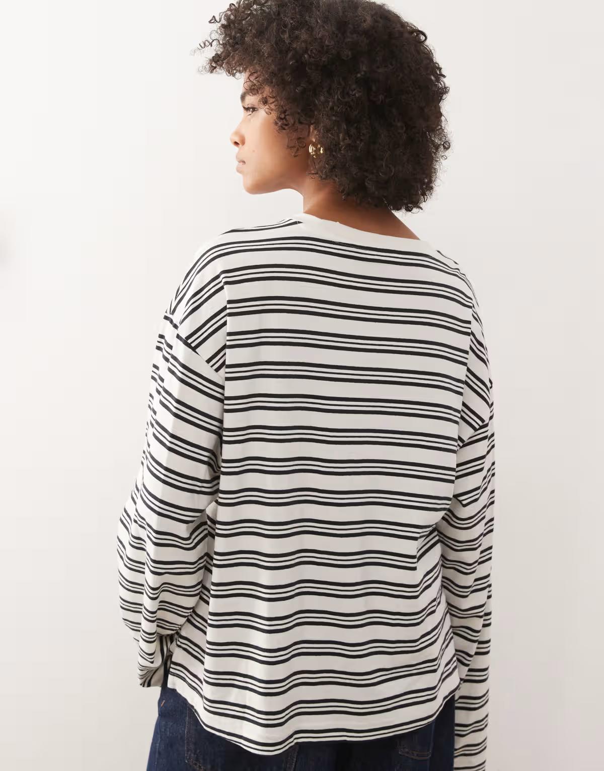 Monki oversized long sleeve t-shirt with side slits in black and white stripe