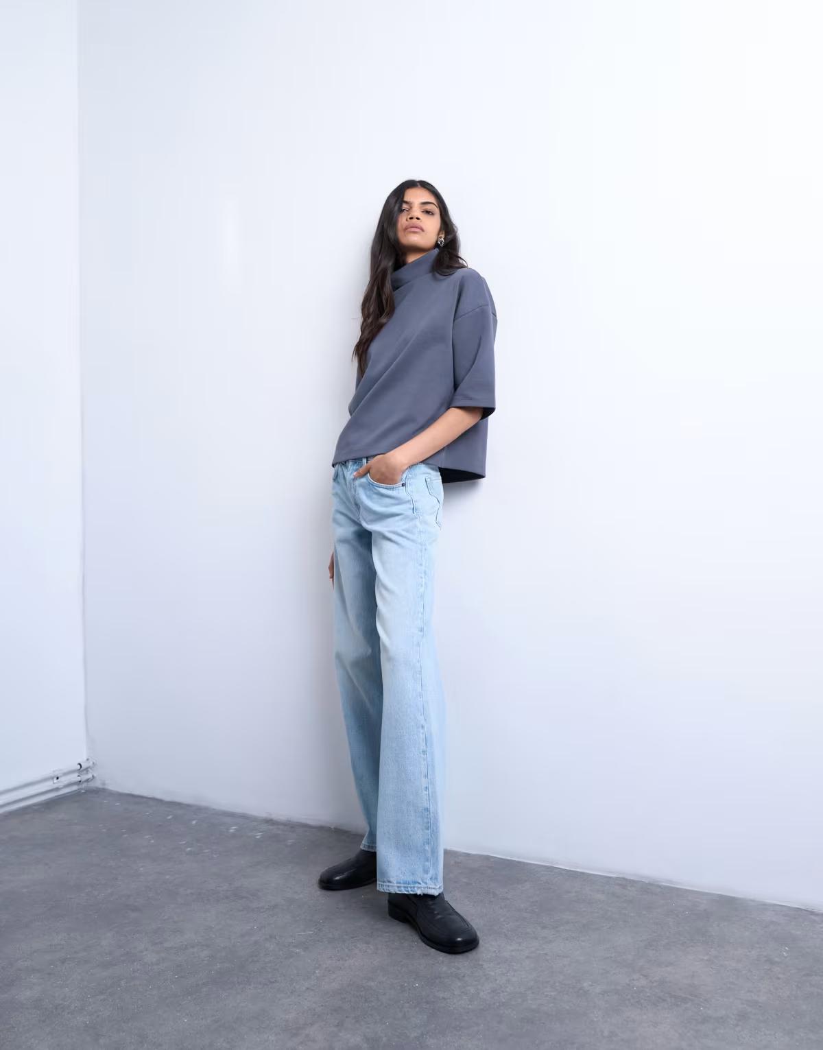 Machine wash according to instructions on care labelMain: 78% Cotton, 14% Polyester, 8% Elastane.Topshop is entering a new era. Retaining its fashion authority and the very best of its heritage, while celebrating iconic styles such as the Jamie and Joni jean, and embracing the new. With that unique London spirit remaining at the core of the collections, join us on a journey of exploration and discovery. Shop the entire range only at ASOS in petite, maternity, tall and curve edits and expect dresses, tops, tailoring and shoes.Size & FitModel's height: 175cm/5'9"Still unsure what size to get? Check out our size guide.