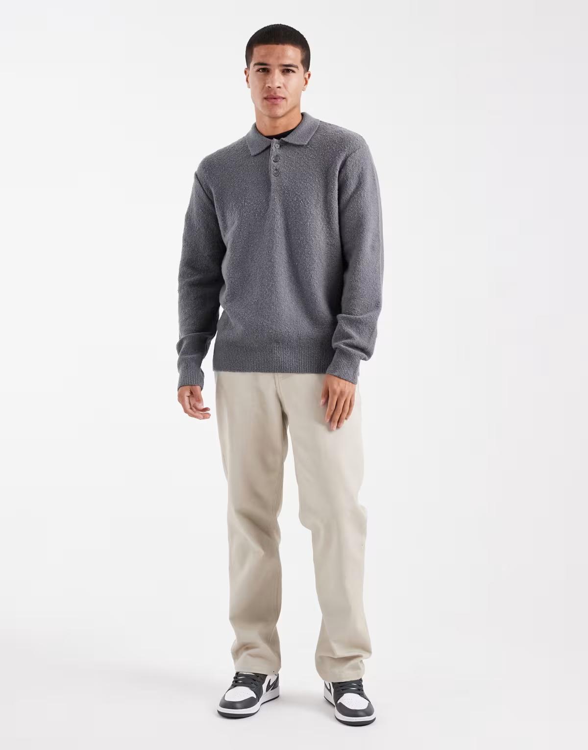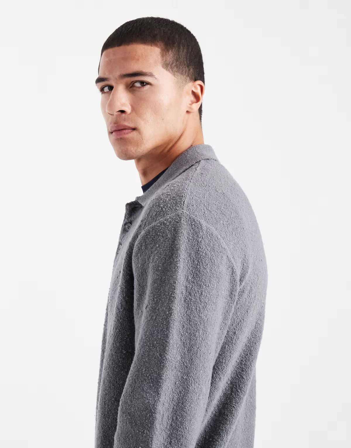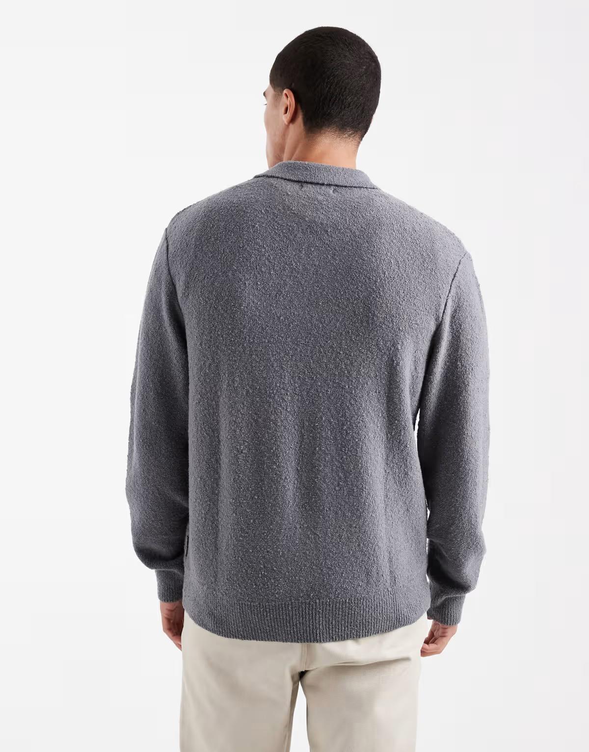 Jack & Jones boucle polo jumper in grey