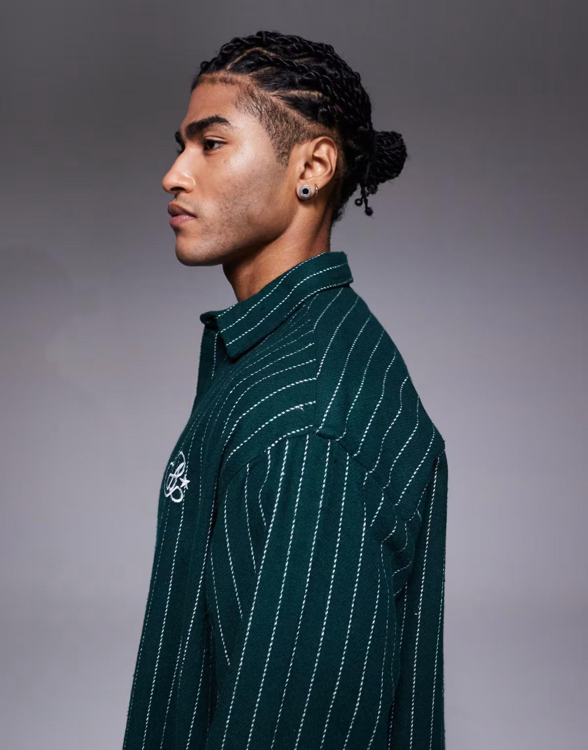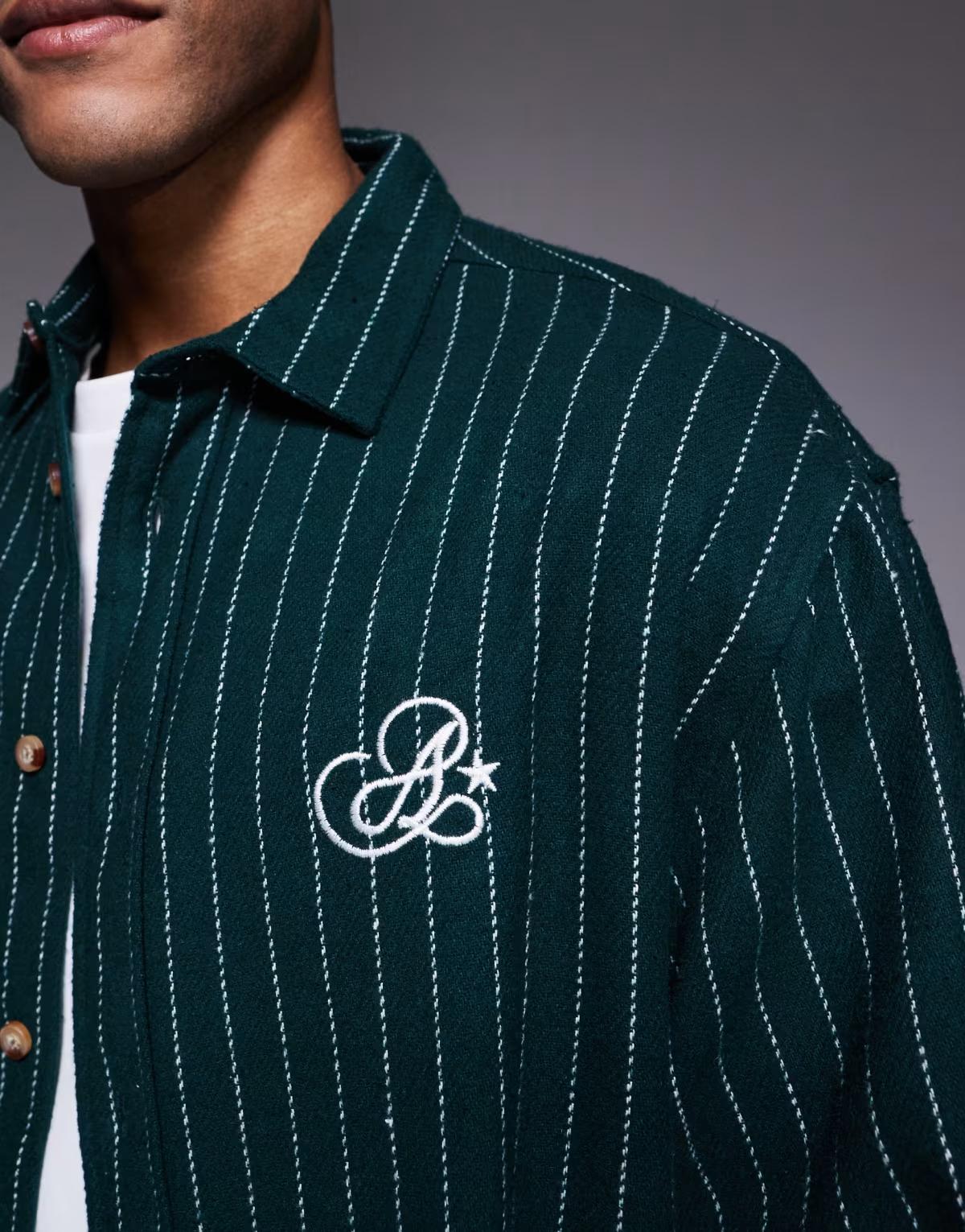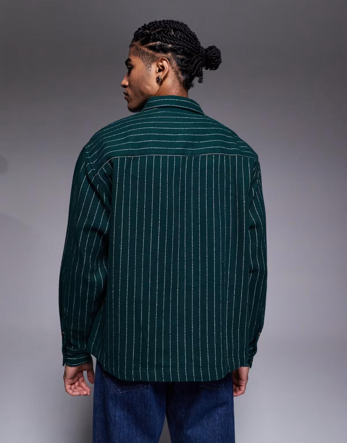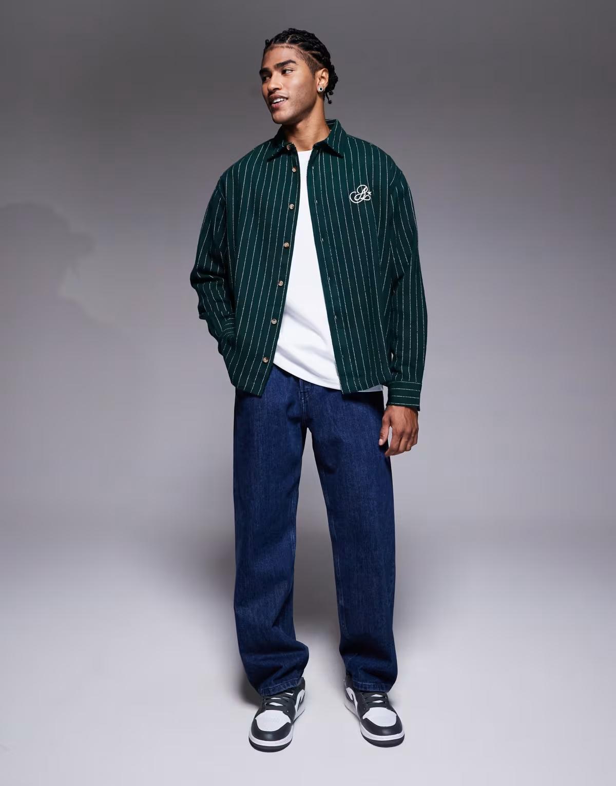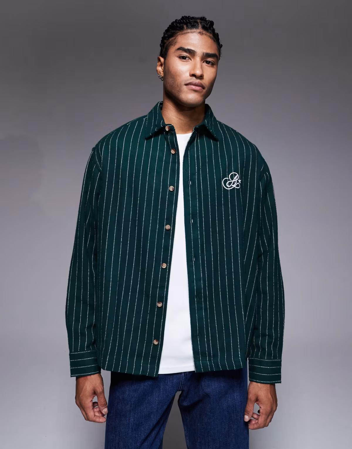 ASOS DESIGN oversized stripe shirt with chest embroidery in green