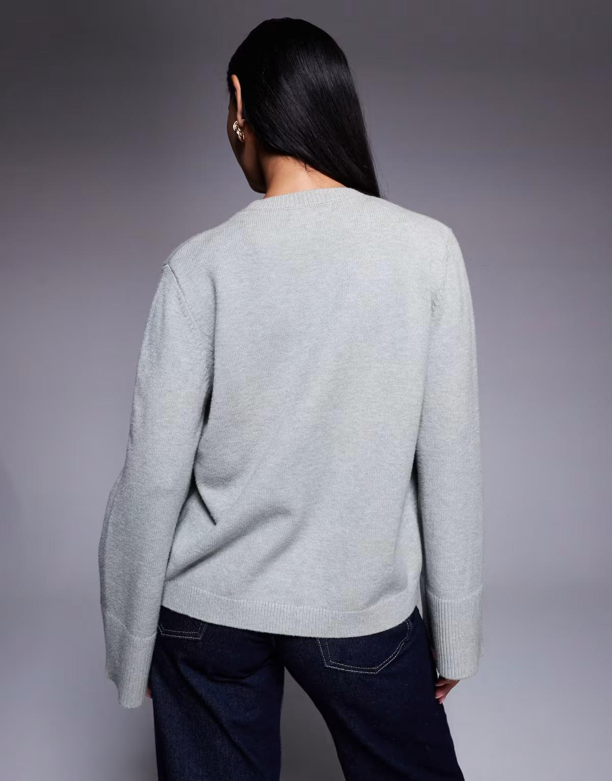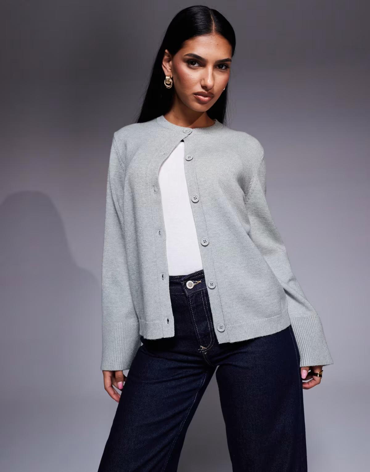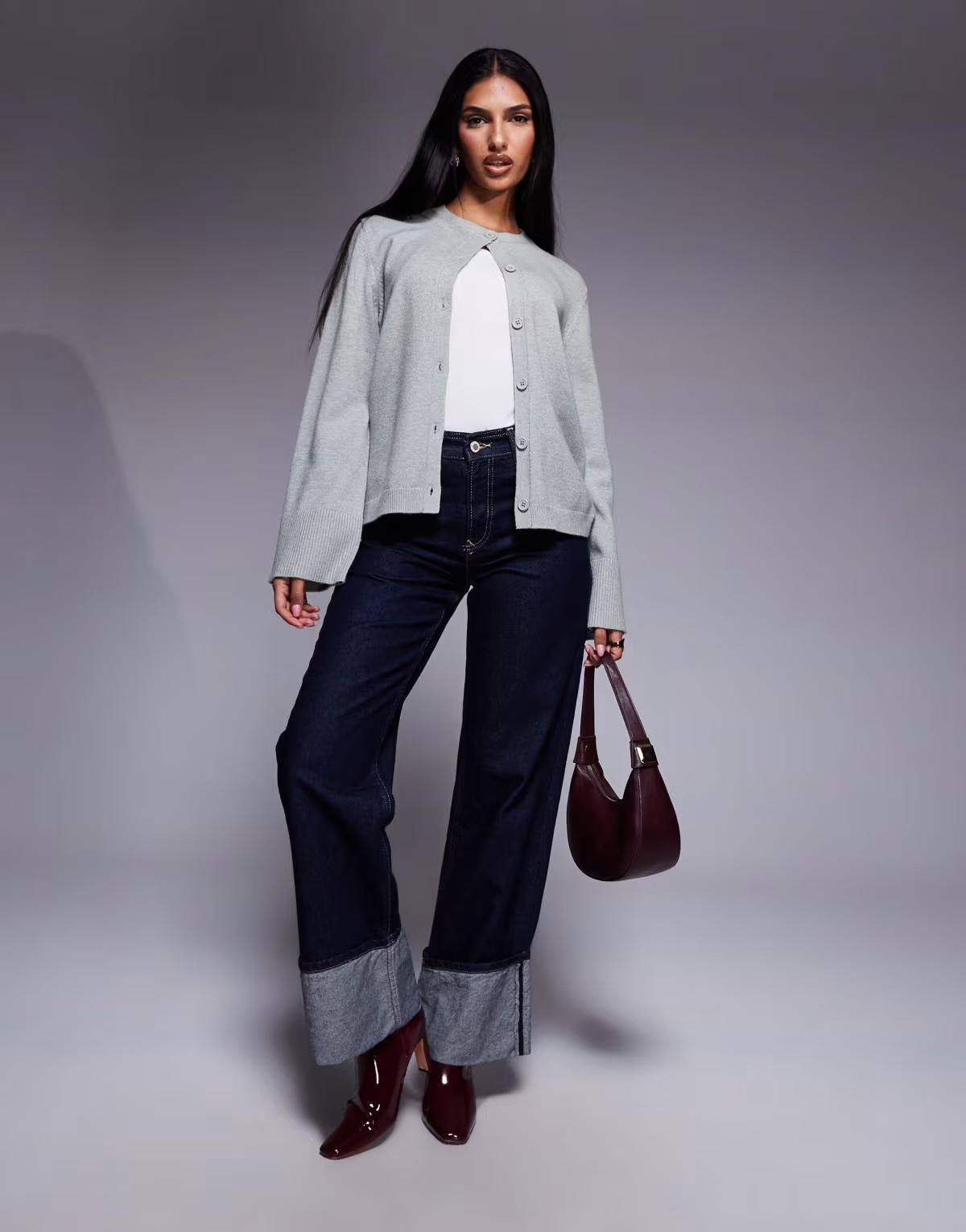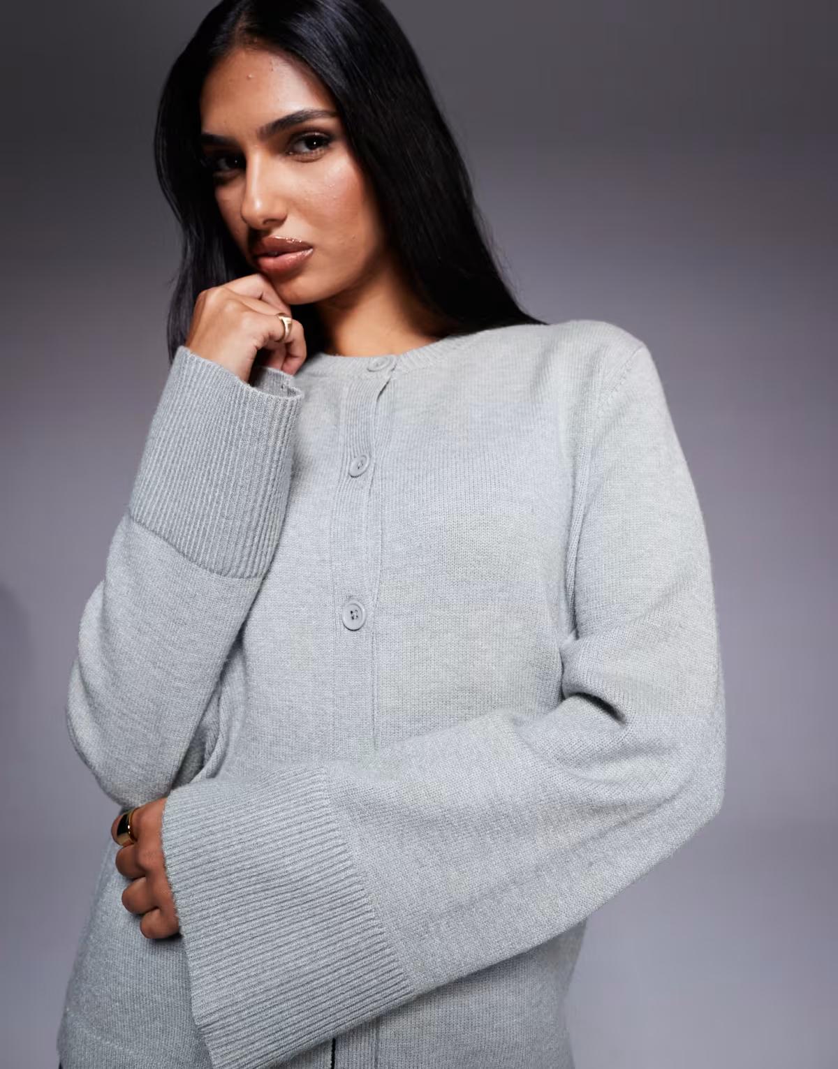 Aria Cove ribbed deep wide cuff cardigan in light grey marl