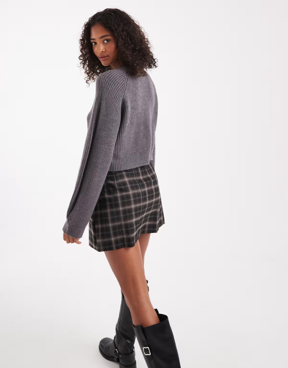 Brave Soul cropped knitted crew neck jumper in charcoal