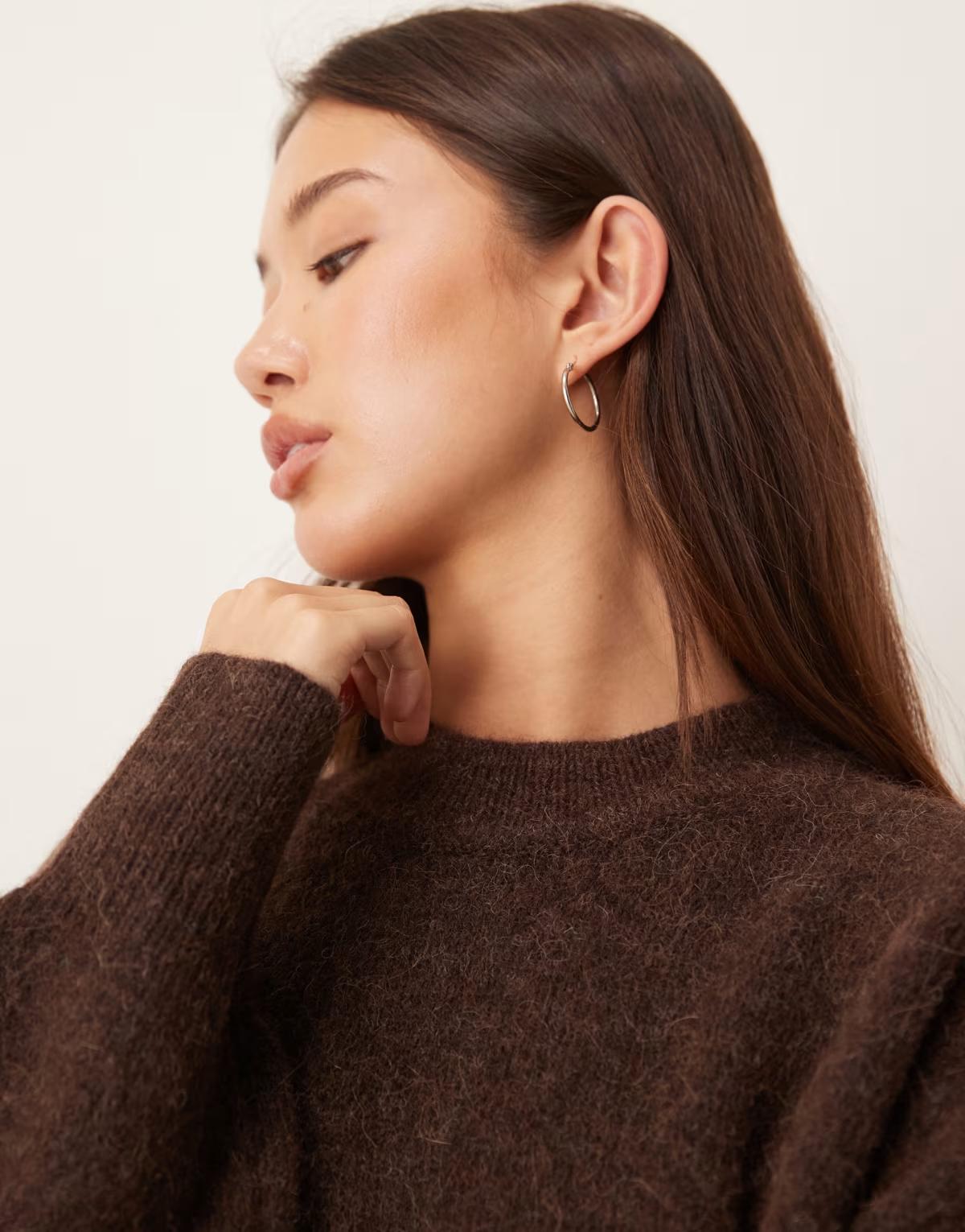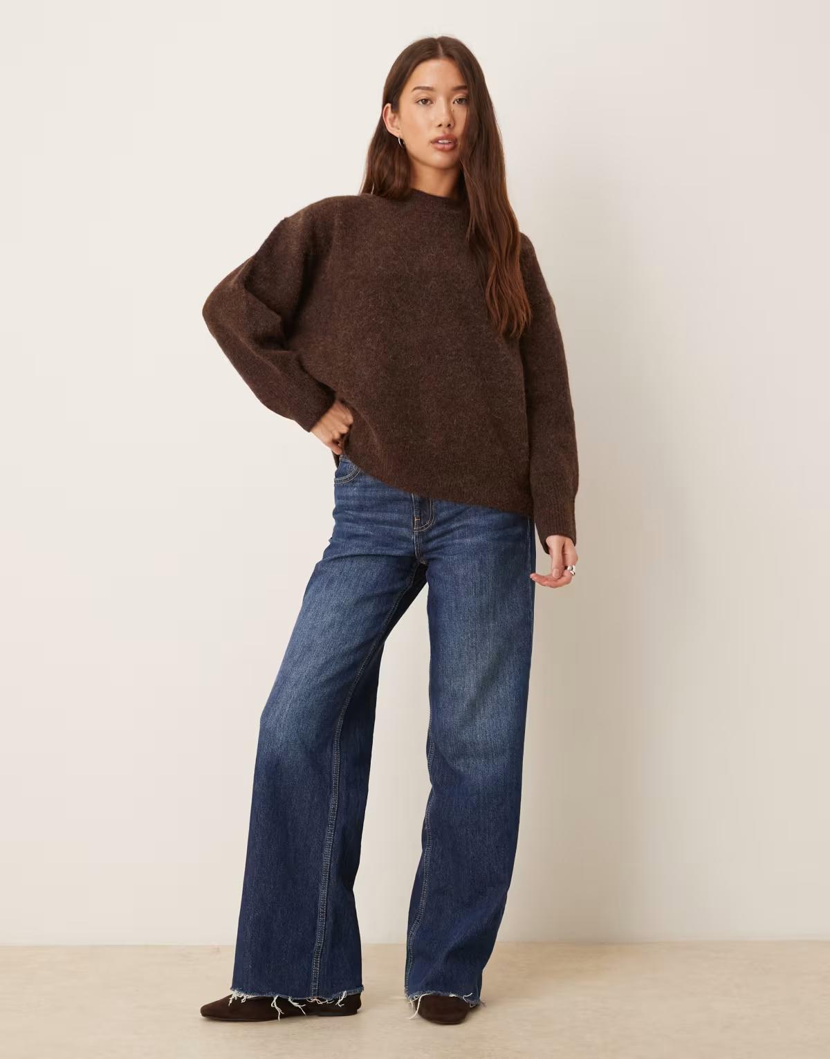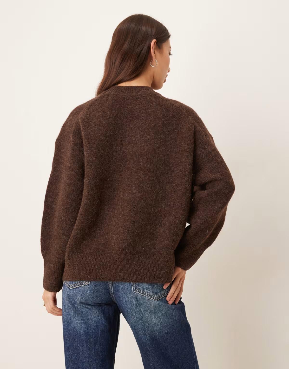 ASOS DESIGN alpaca oversized crew neck jumper in chocolate