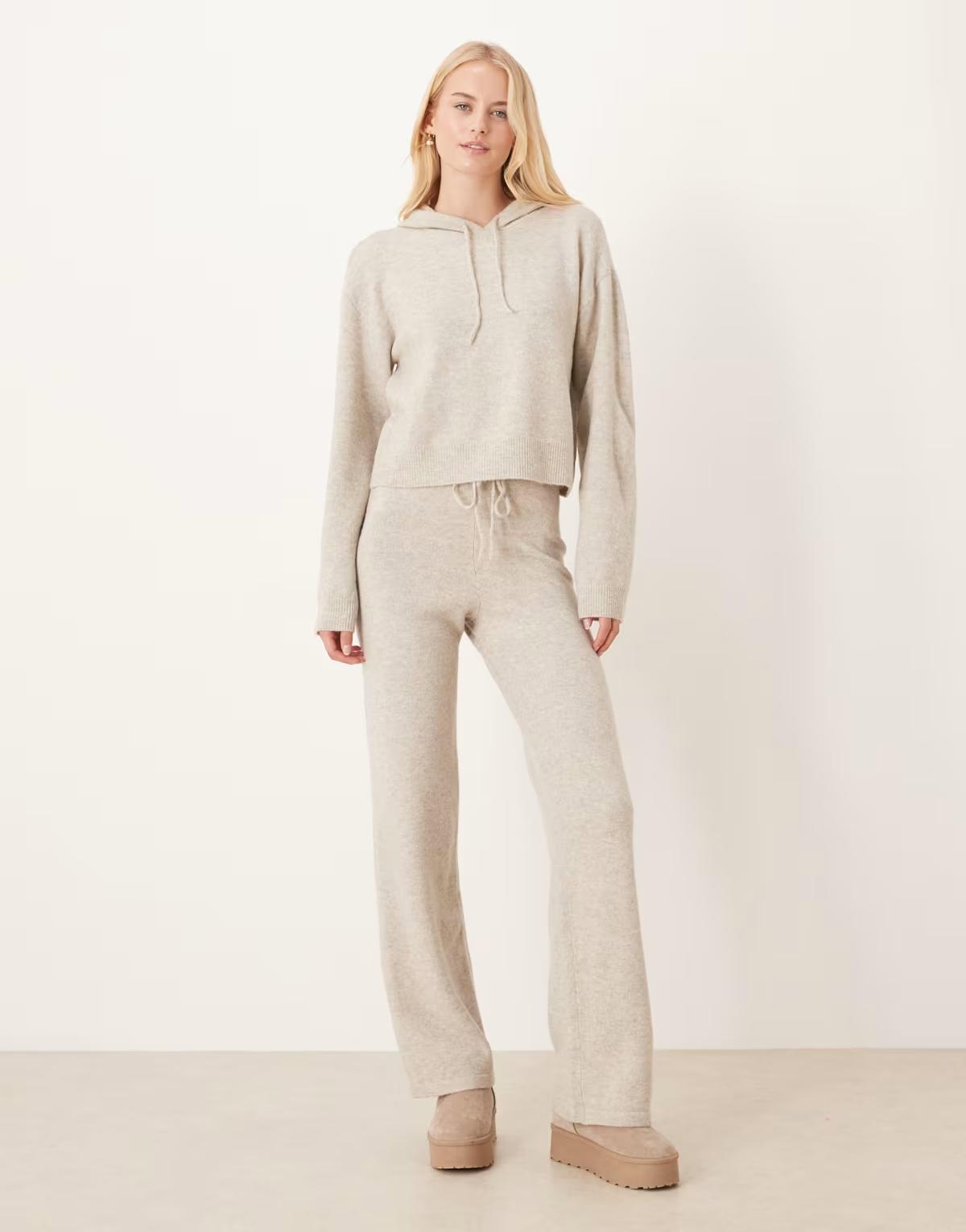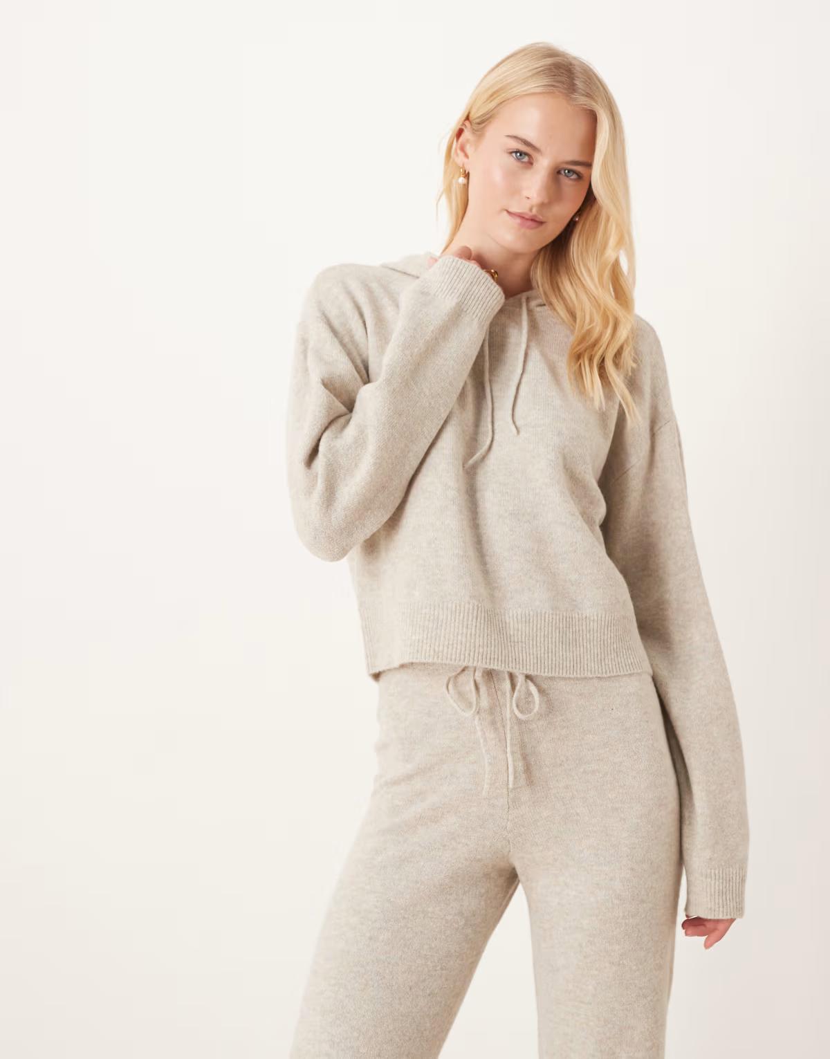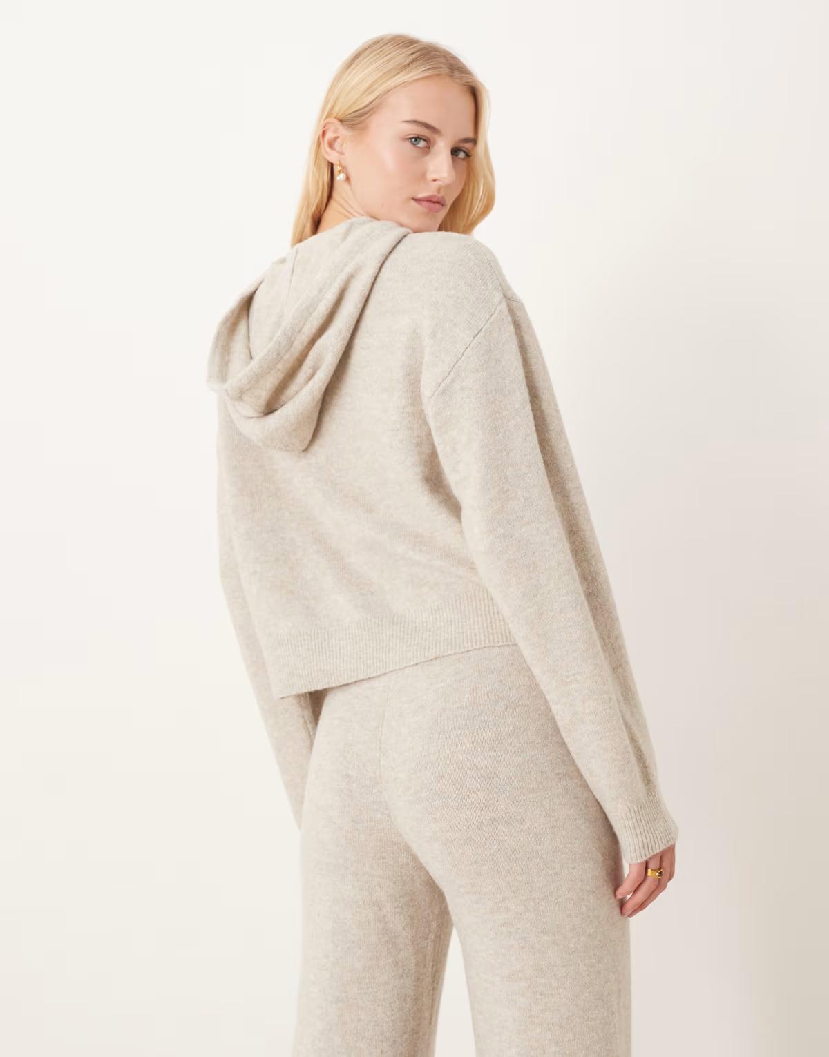 JDY Tall slouchy knitted hoodie co-ord in cream