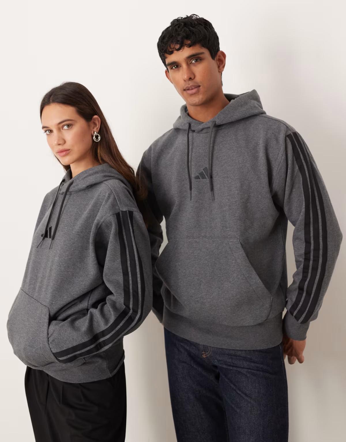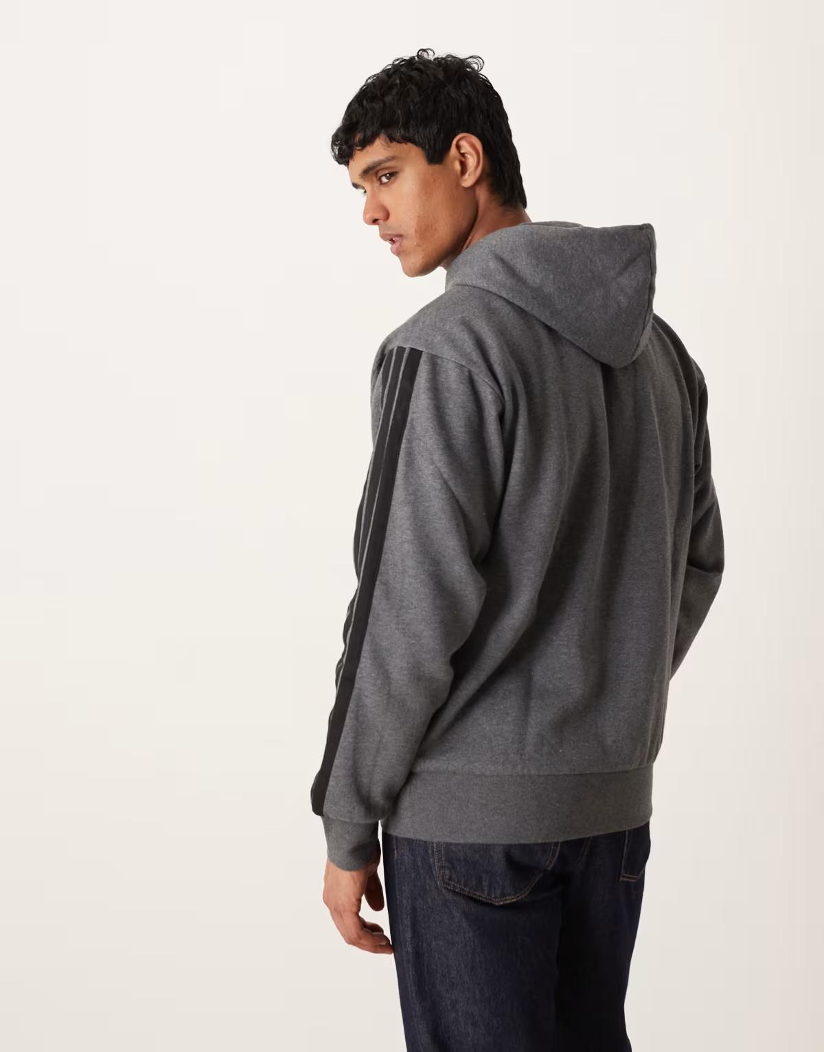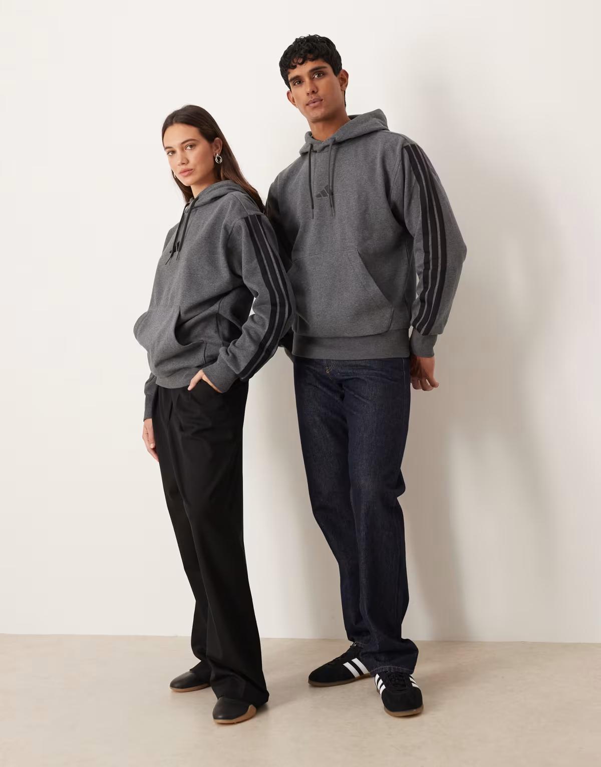 adidas Sportswear Three Stripe fleece hoodie in grey