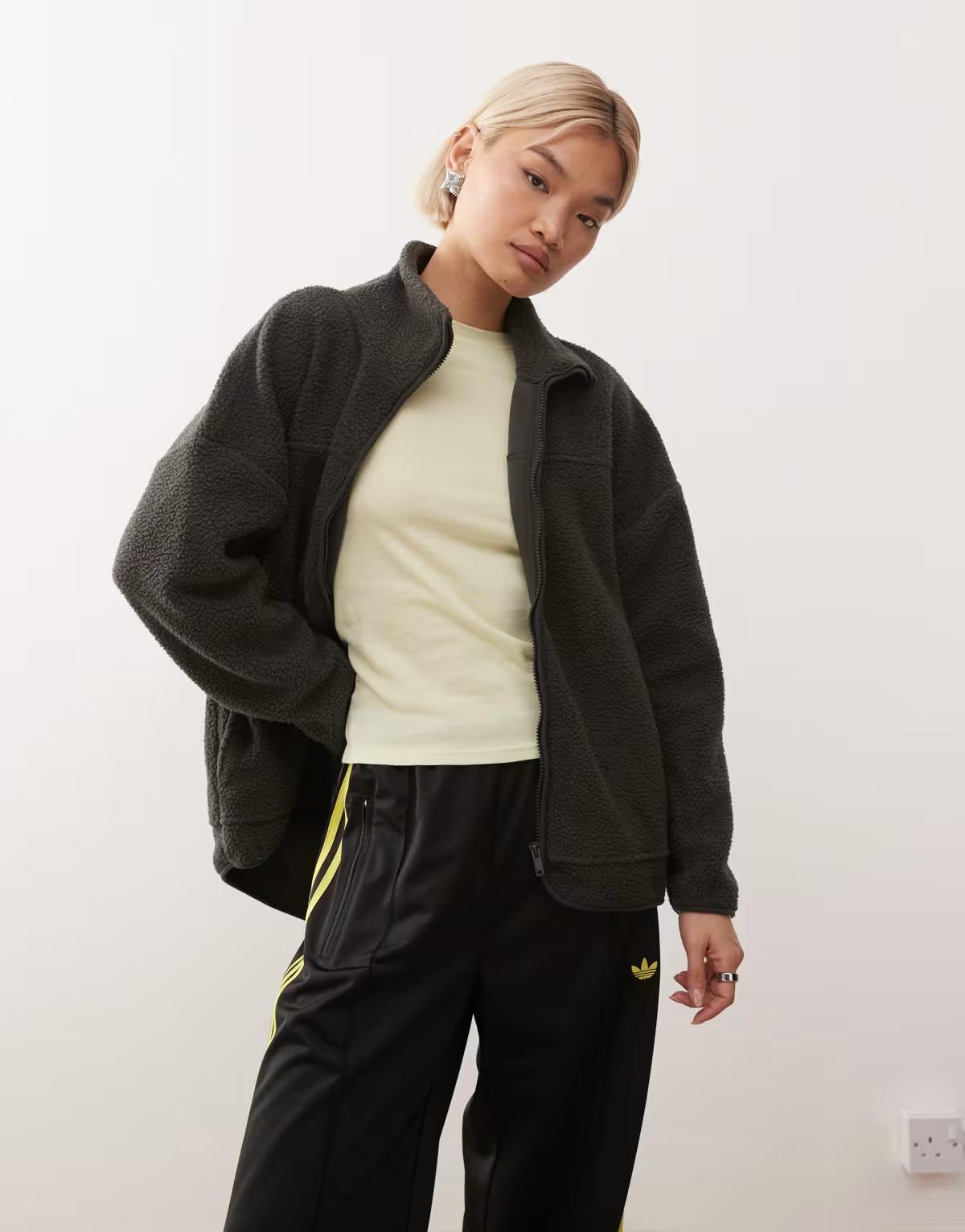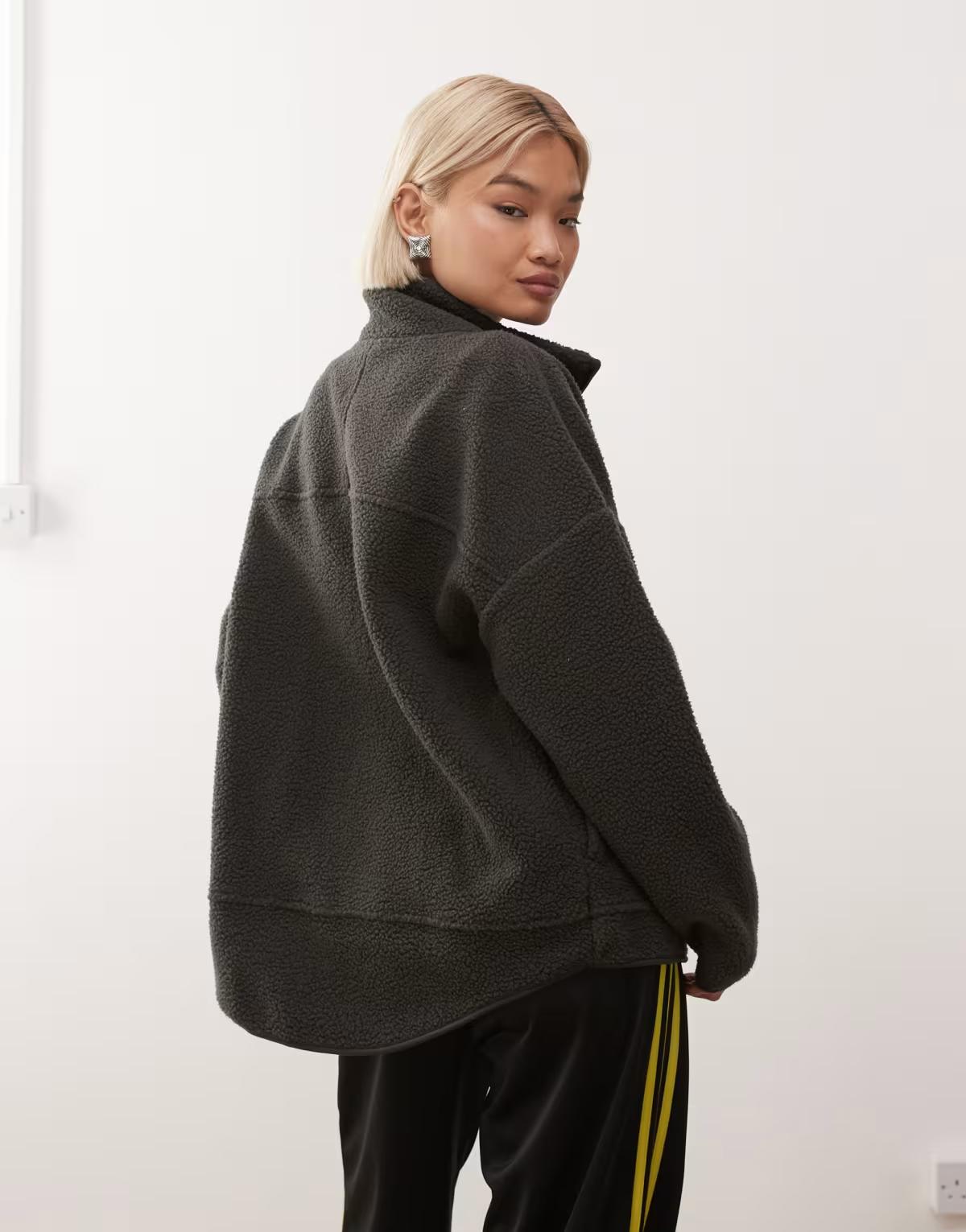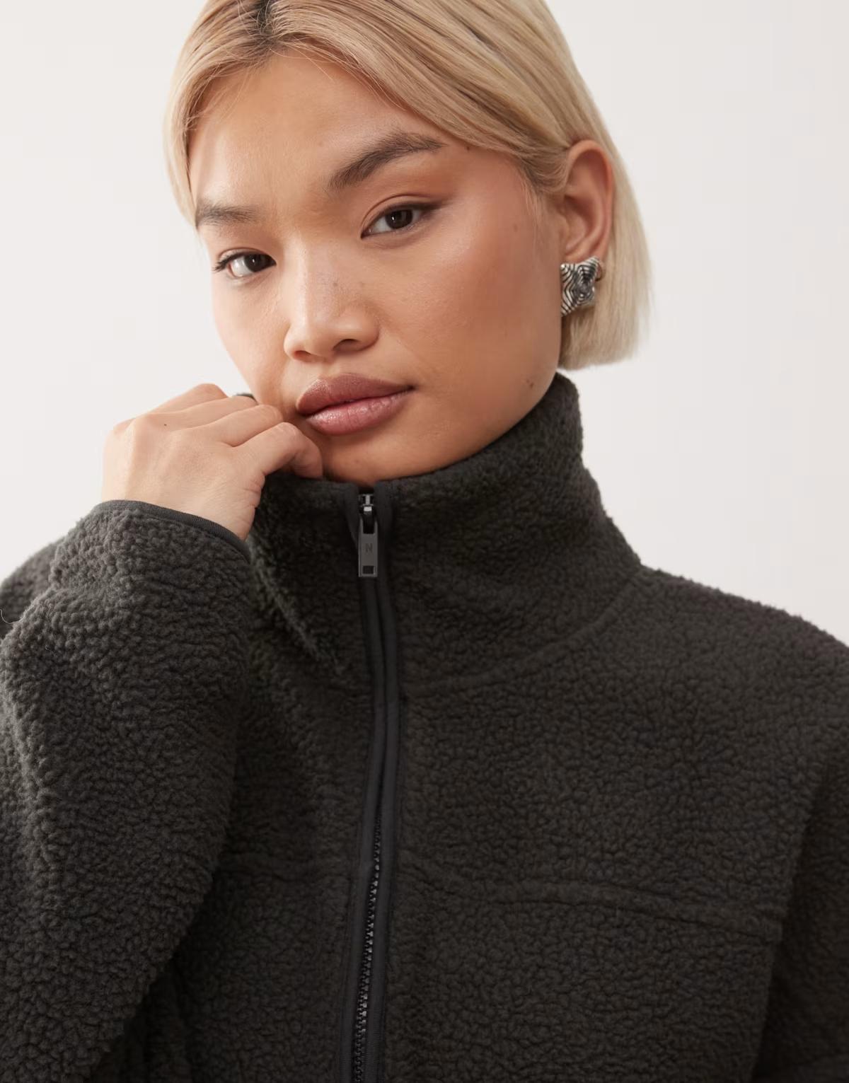Noisy May zip thorugh funnel fleece in charcoal