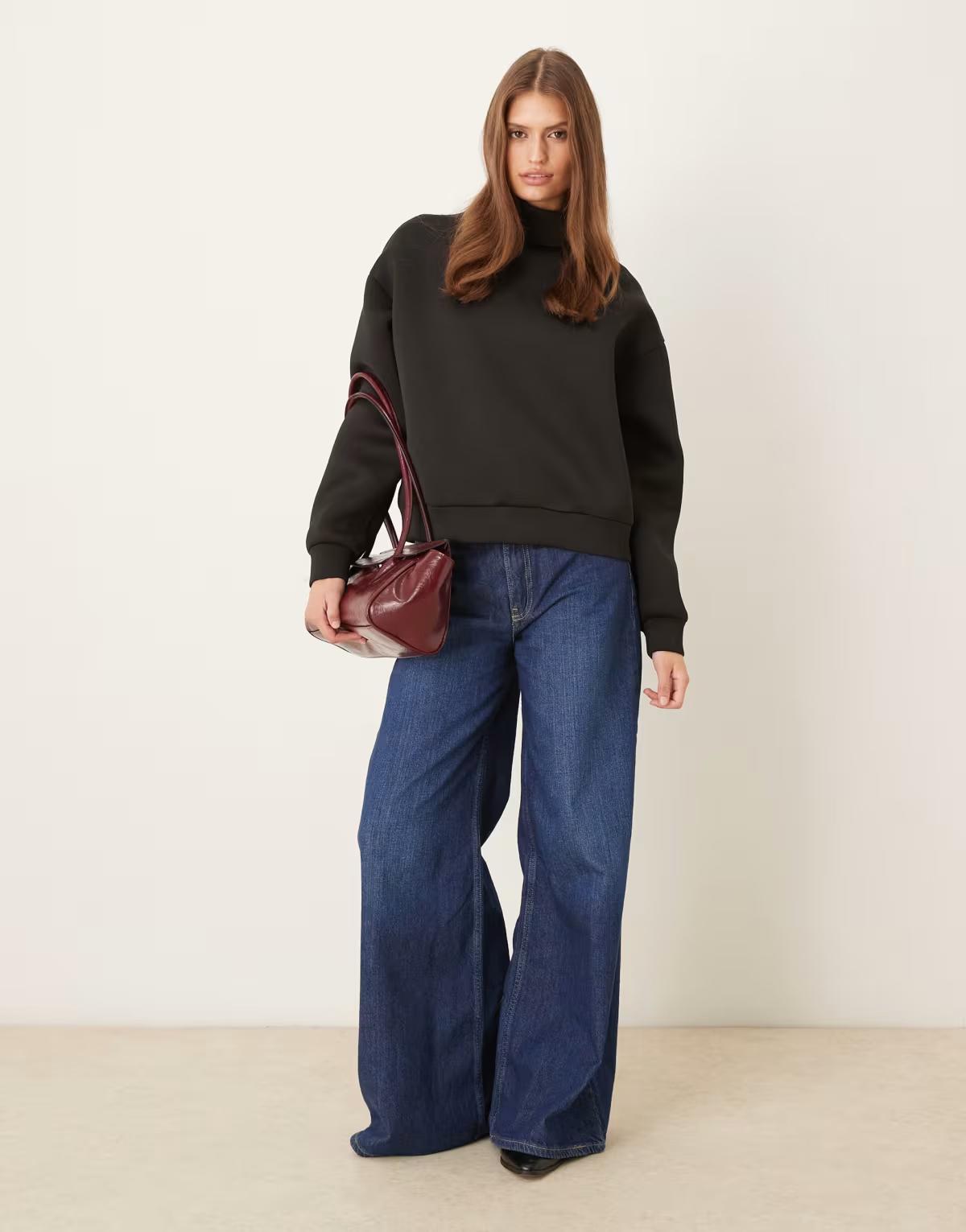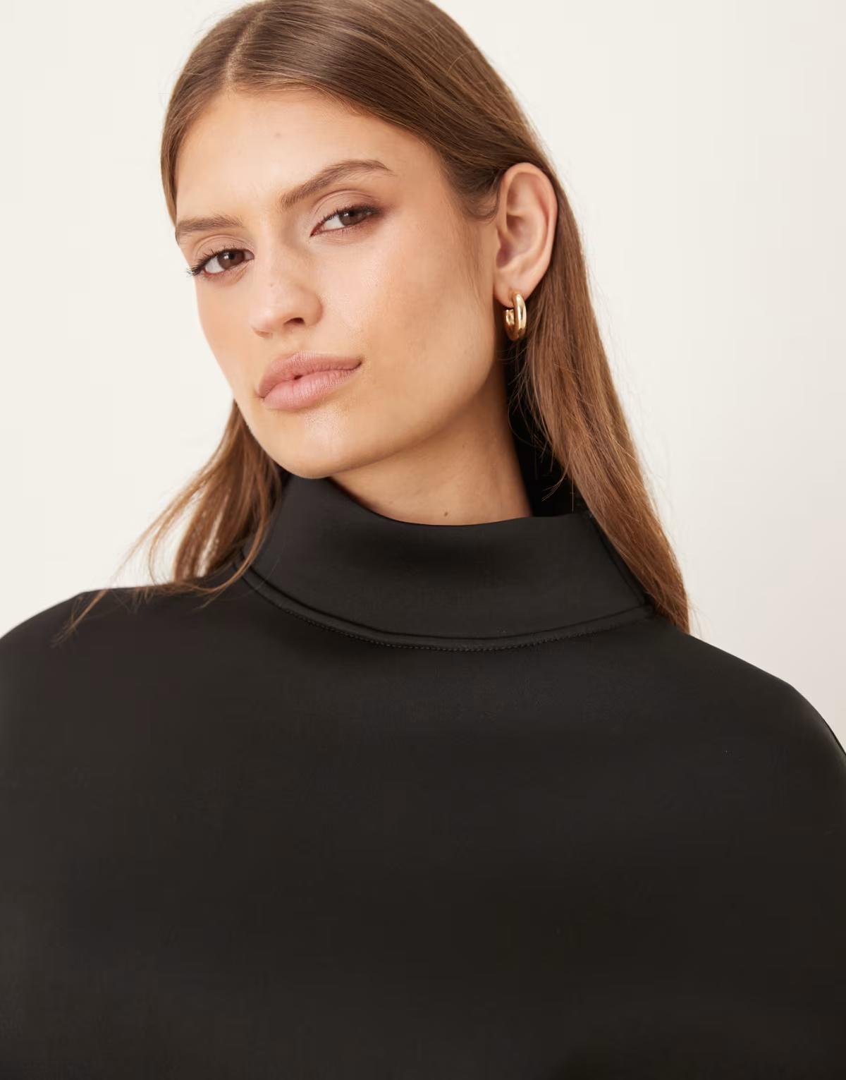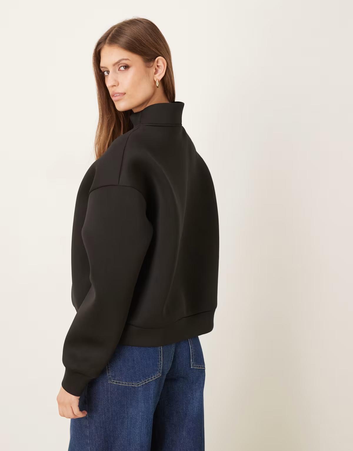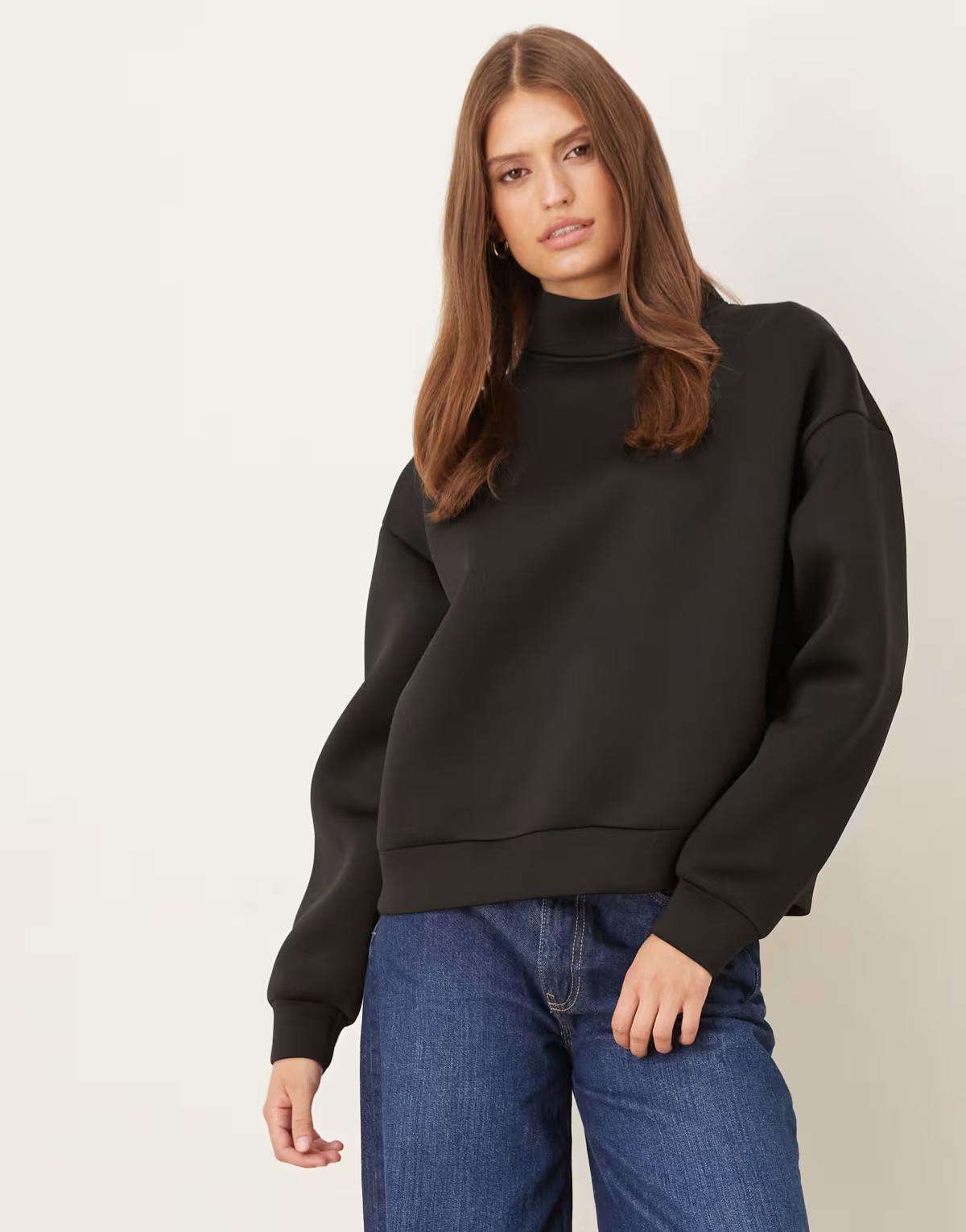 ASOS DESIGN scuba-style fabric funnel neck sweat in black