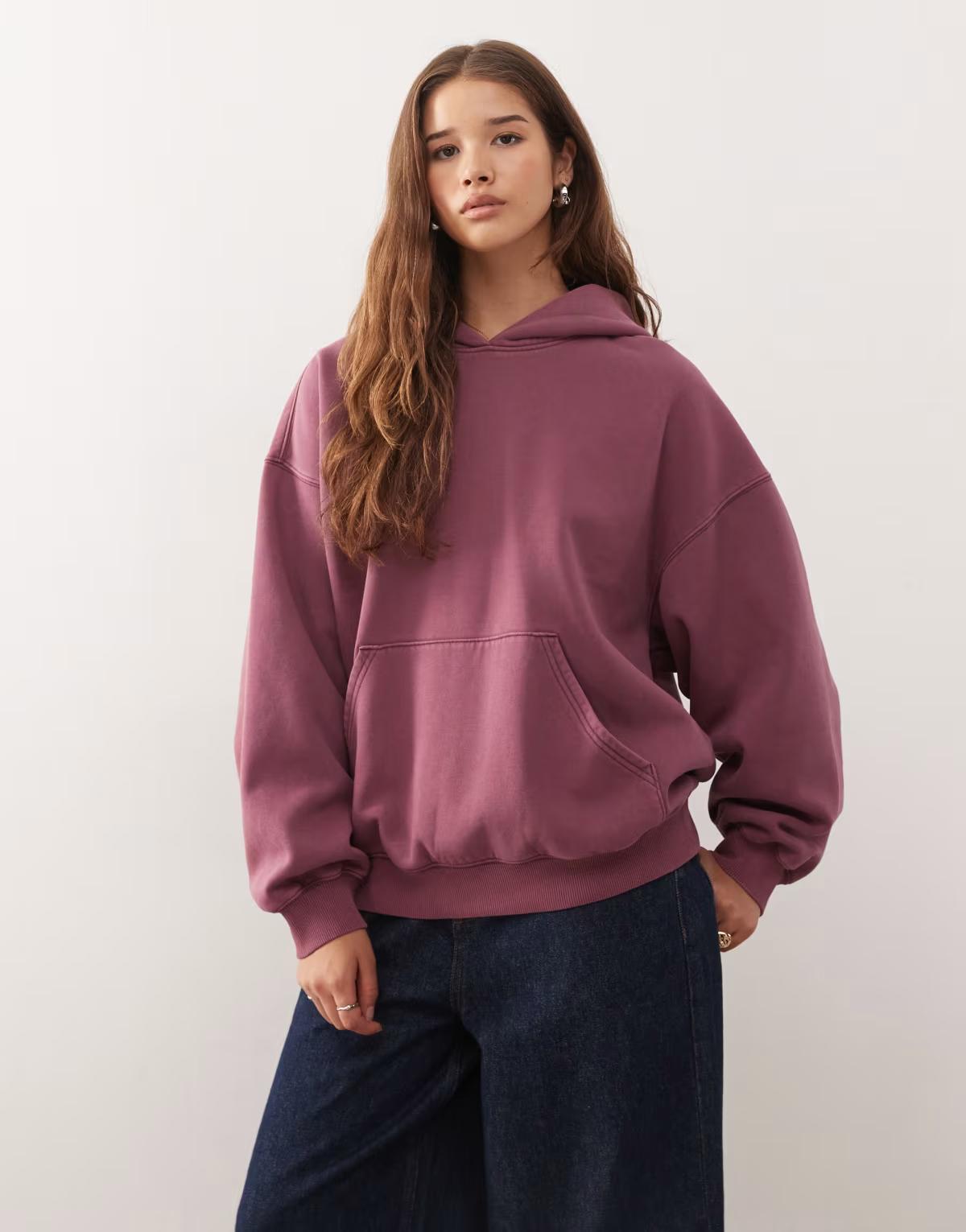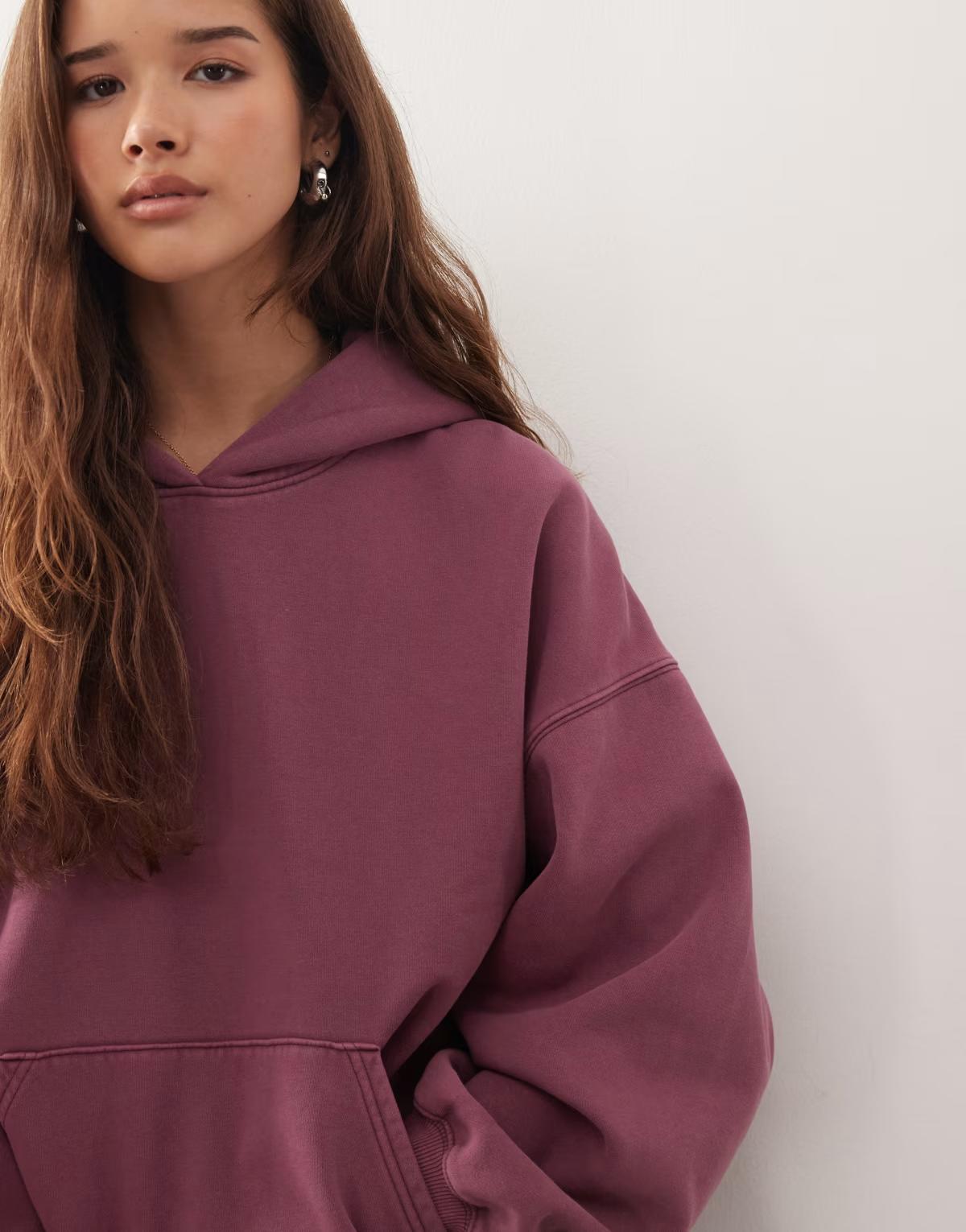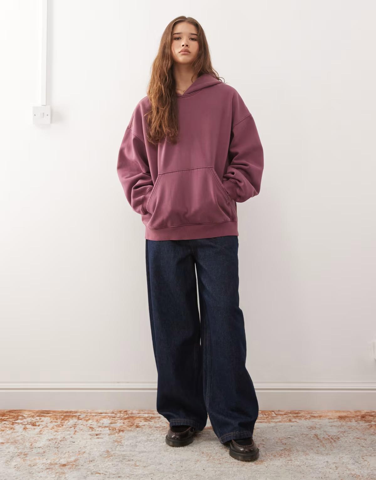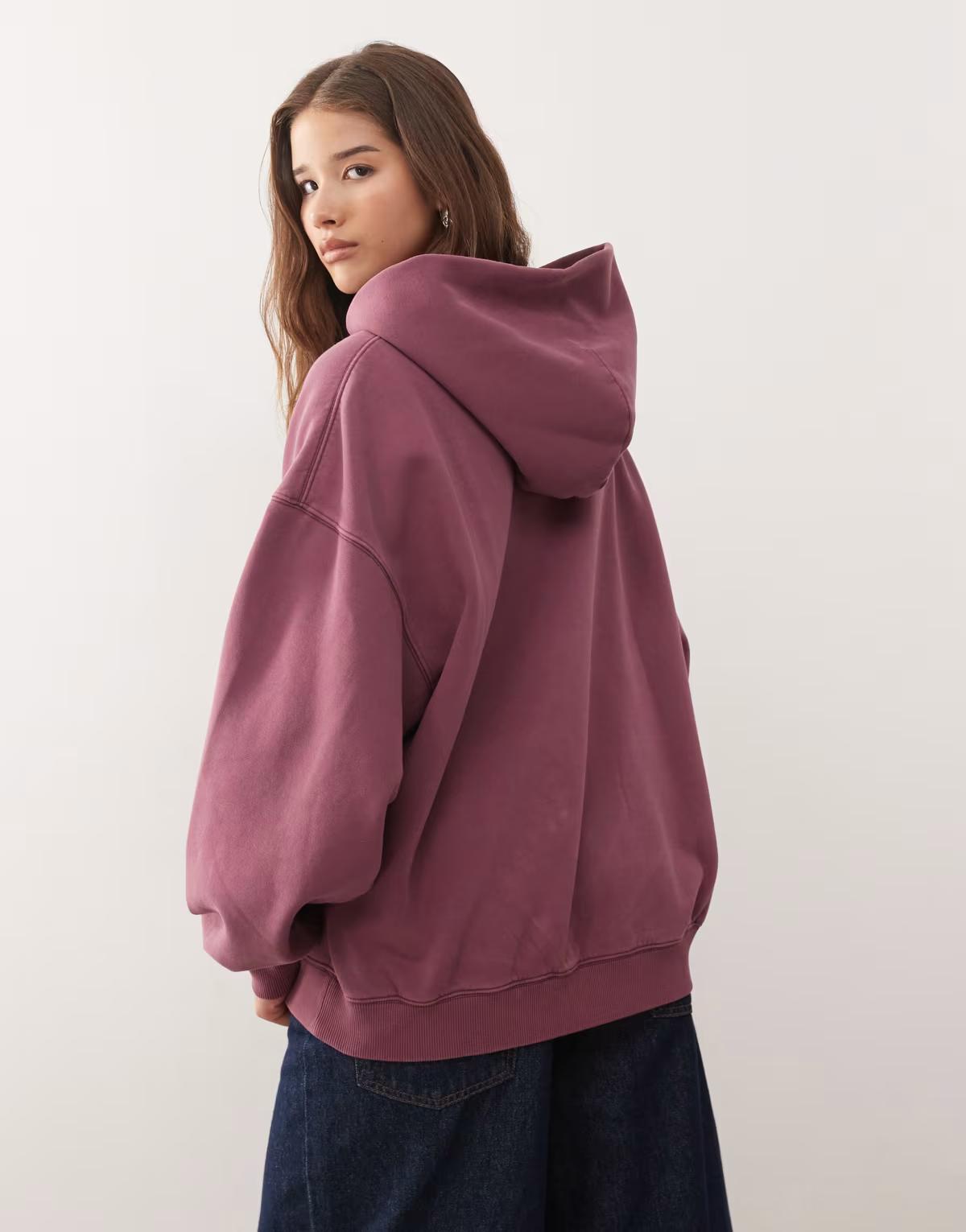 Weekday oversized heavyweight jersey hoodie in burgundy