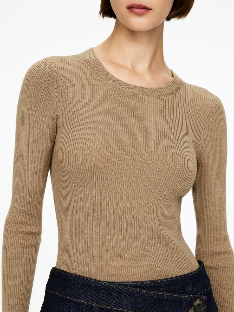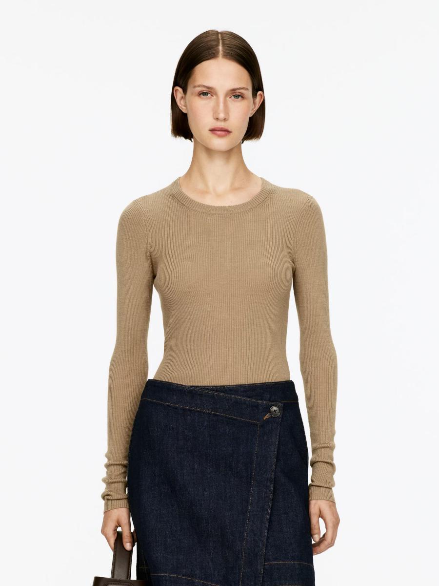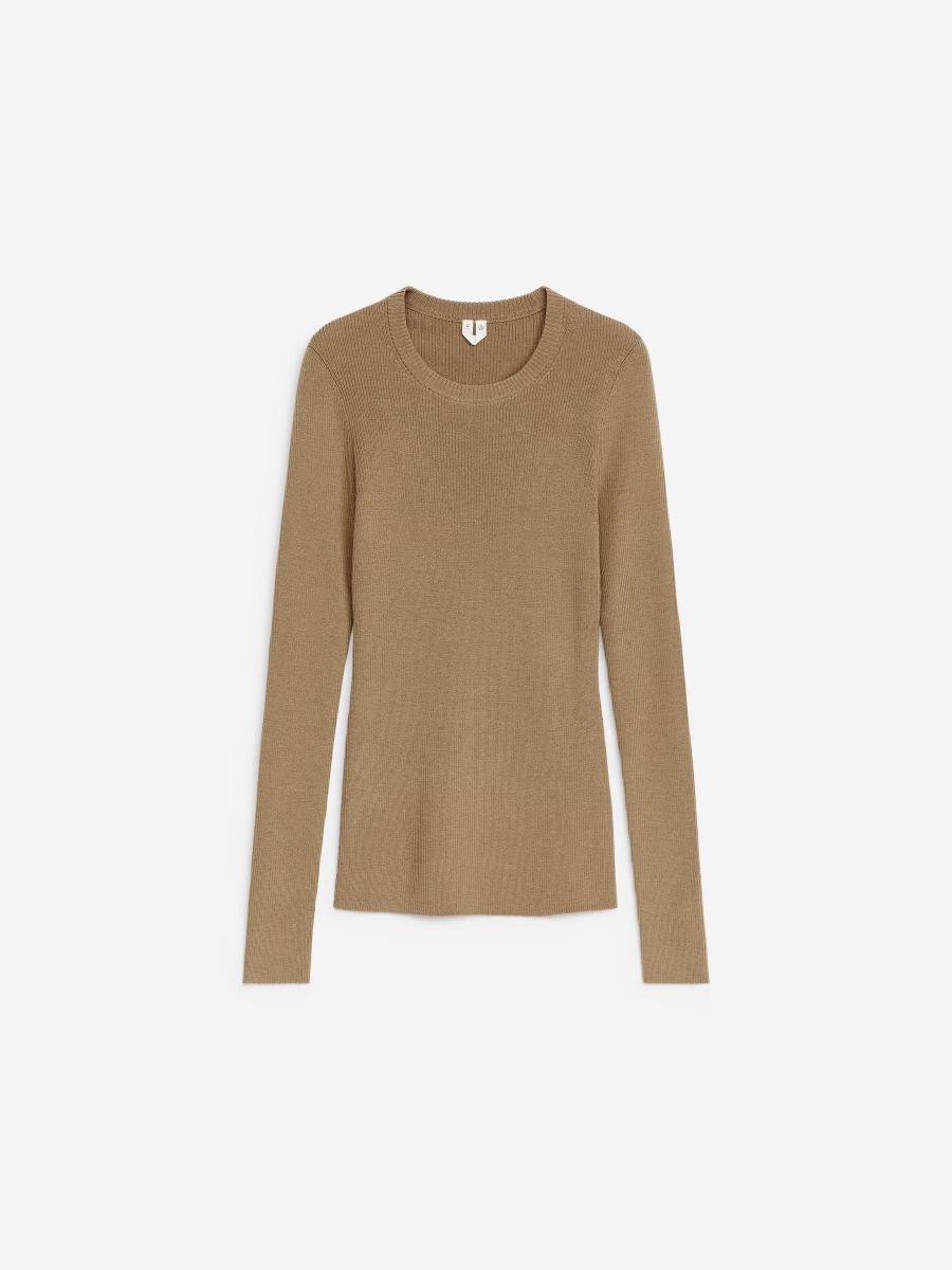Long-sleeved top rib-knitted from merino wool. Crew-neck with ribbed trim. Slim fit. The top contains 100% RWS wool (TE-00047206). Products certified to the Responsible Wool Standard (RWS) contain wool fiber from farms independently certified to animal welfare and land management requirements.ARKET/Women's clothes/Women's knitwear