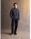 Charcoal Grey Regular Fit Herringbone Pattern Crew Jumper