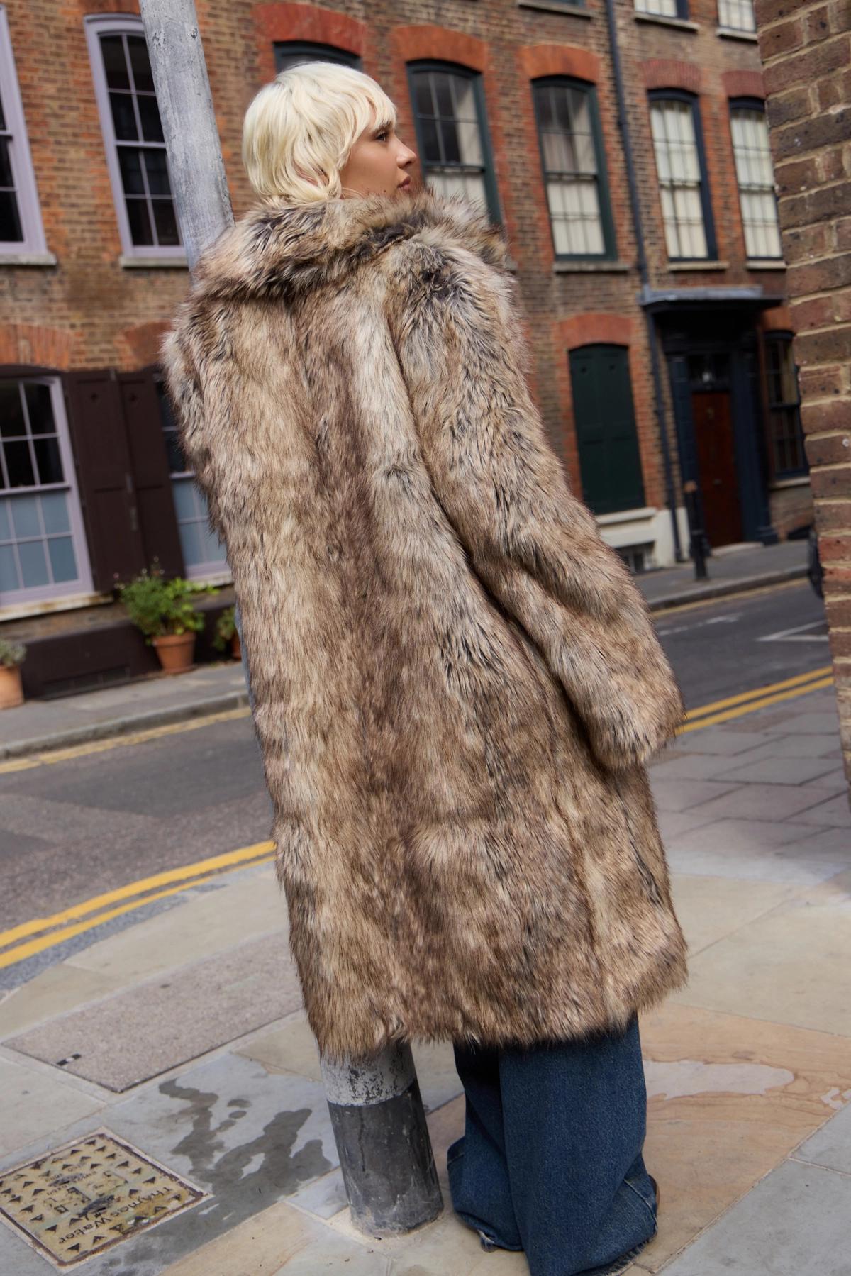 Silence + Noise Tipped Faux Fur Maxi Coat