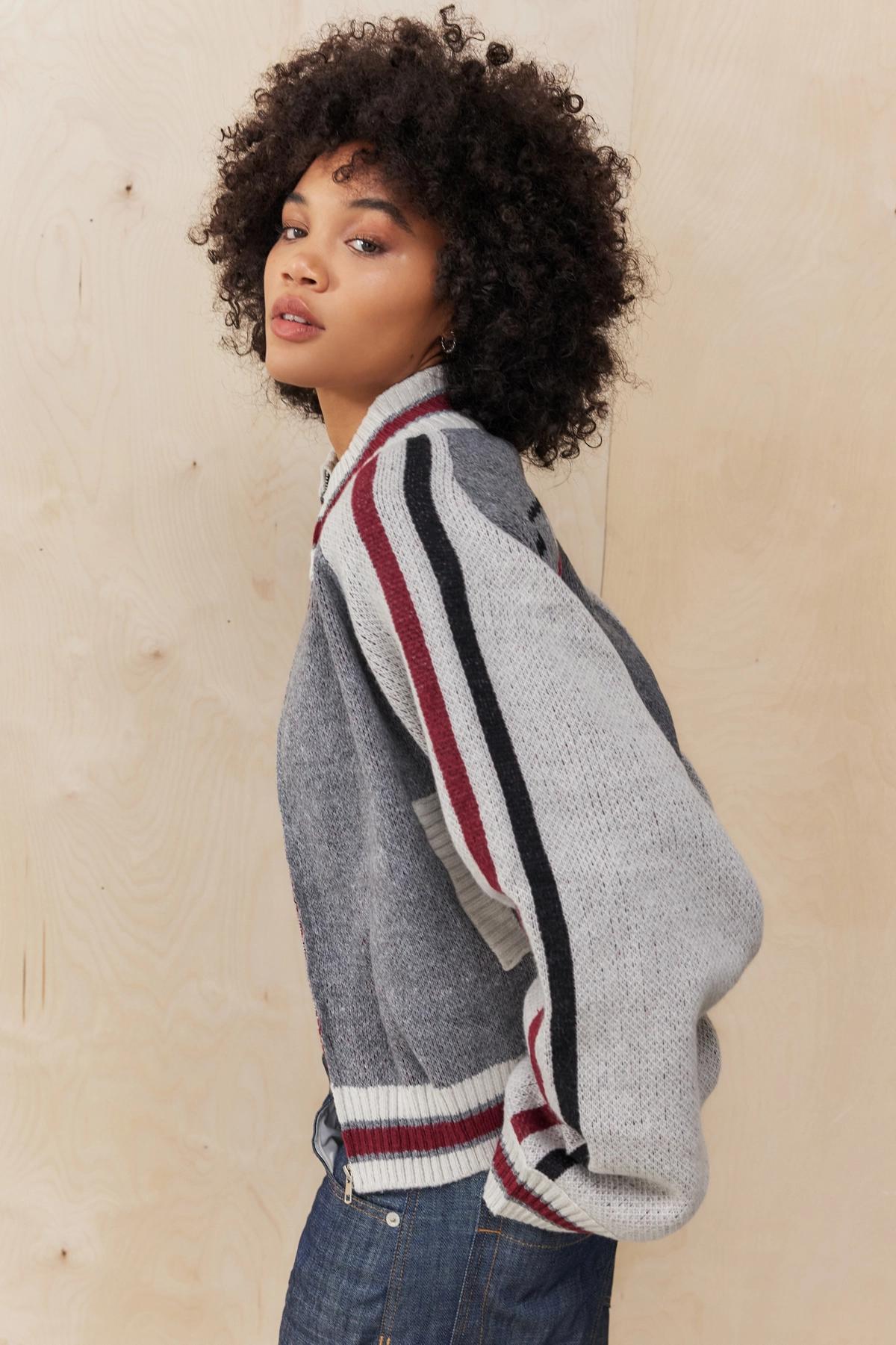 Jaded London Grey Team 85 Knitted Bomber Jacket