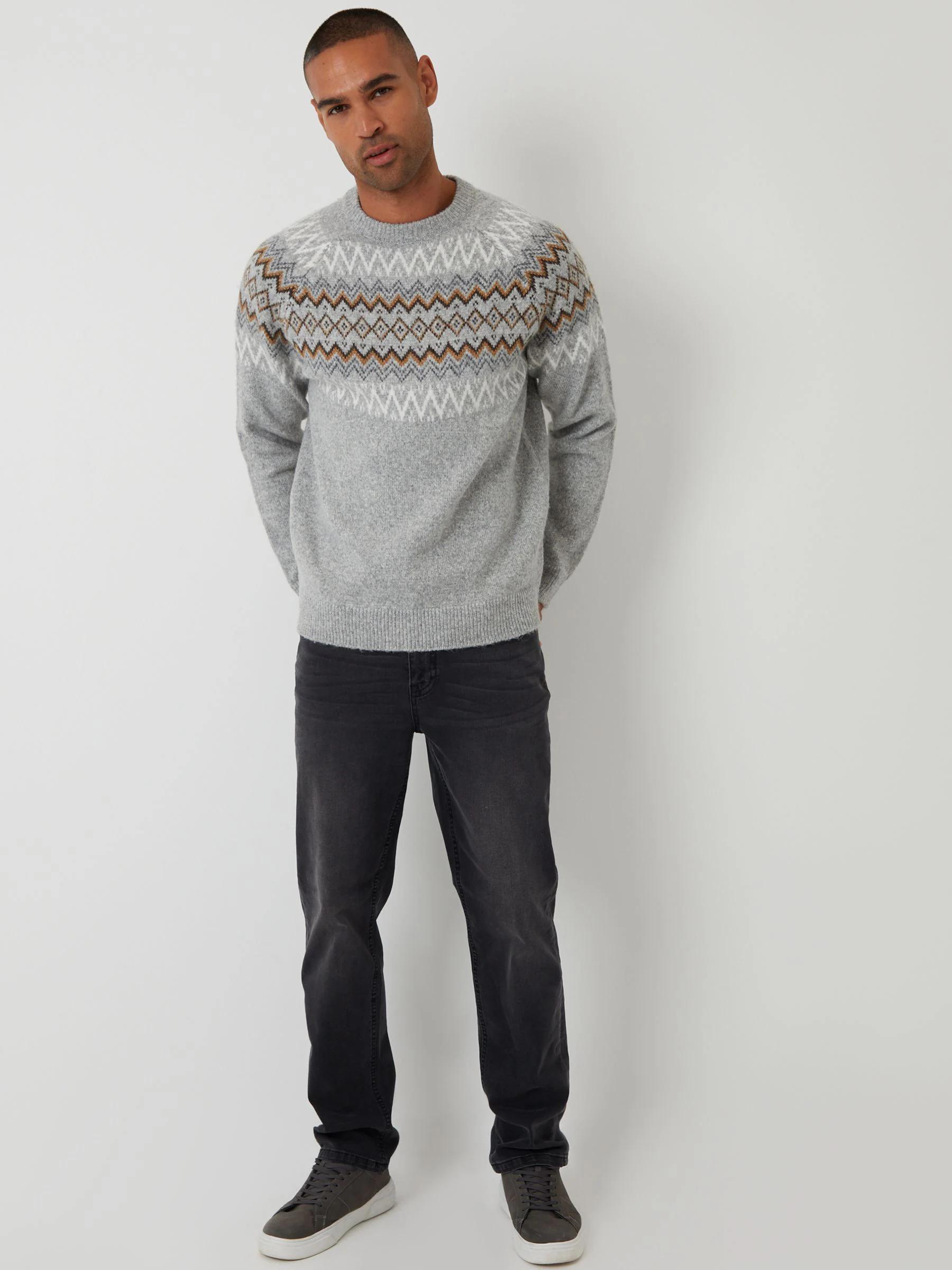 Threadbare Grey Raglan Fairisle Christmas Jumper