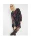Black Floral Long Sleeve Knot Mini Dress