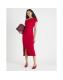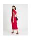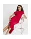 Red Asymmetric Drape Wrap Midi Dress