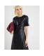 Black Faux Leather Buckle Detail Swing Dress
