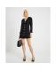 Black Boucle Long Sleeve Plunge Mini Dress