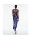 Navy Satin Diamante Detail Slip Midi dress