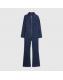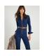 Blue Denim Long Sleeve Stretch Jumpsuit