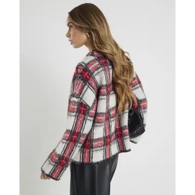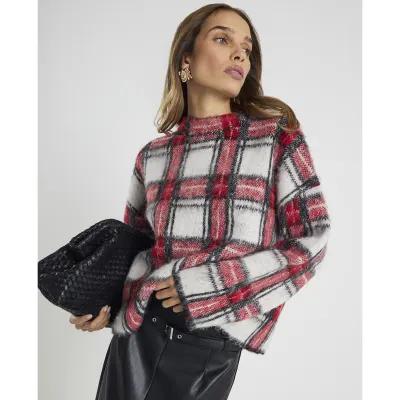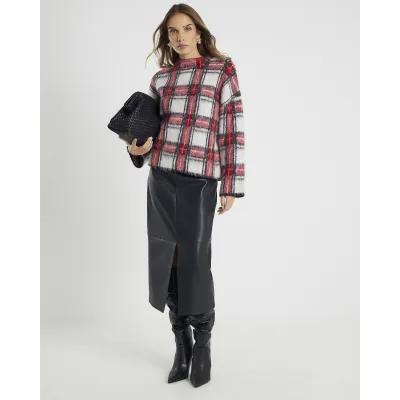 Red Long Sleeve Tartan Fluffy Jumper