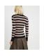 Brown Knitted Stripe Ribbed Roll Neck Top