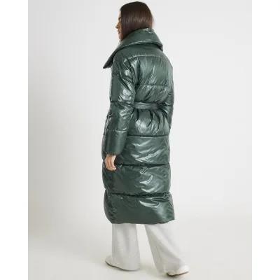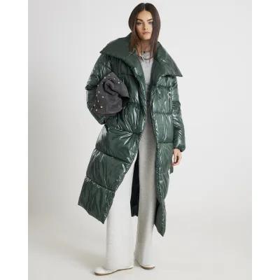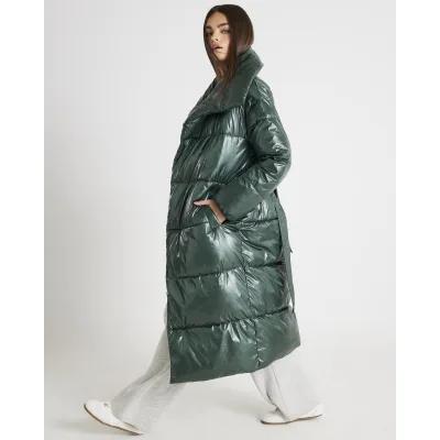 Green High Shine Longline Padded Coat